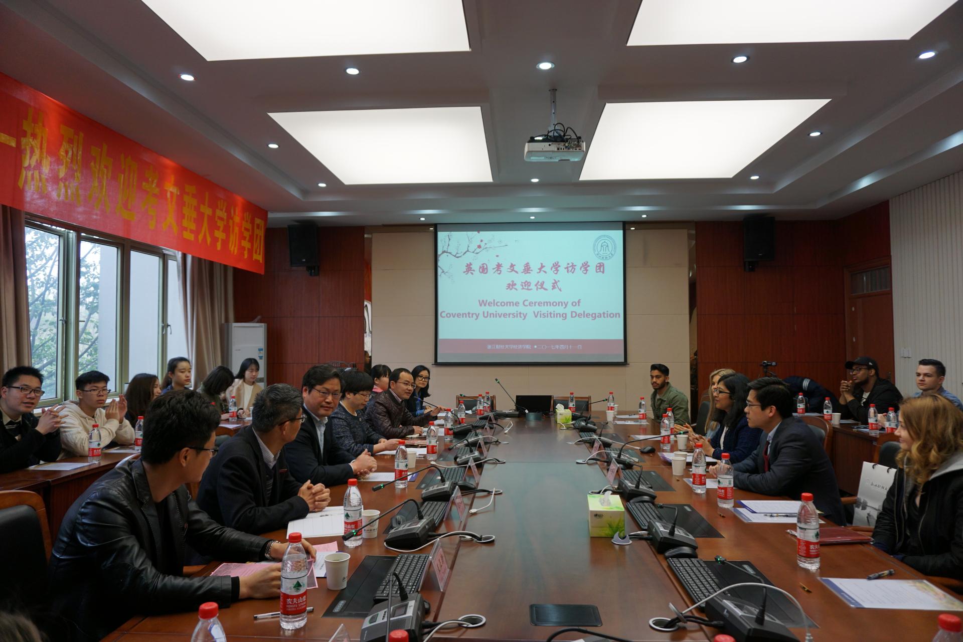 4月11日早上8:30,公司在6号楼210会议室召开了英国考文垂大学访问团师生欢迎仪式。热烈欢迎考文垂大学师生交流团(国贸团)一行20人访问公司。国际交流处副处长管春林、意昂2经理胡亦琴、公司党委书记沈水法、副经理柴志贤、公司党委副书记杨小恩、副经理王正新、考文垂大学指导老师Roopa Aruvanahalli Nagaraju、Mr.Hu出席了本次会议。教师代表郭志芳,考文垂大学访问团员工及公司员工代表参加了本次欢迎仪式,会议由柴志贤副经理主持。
