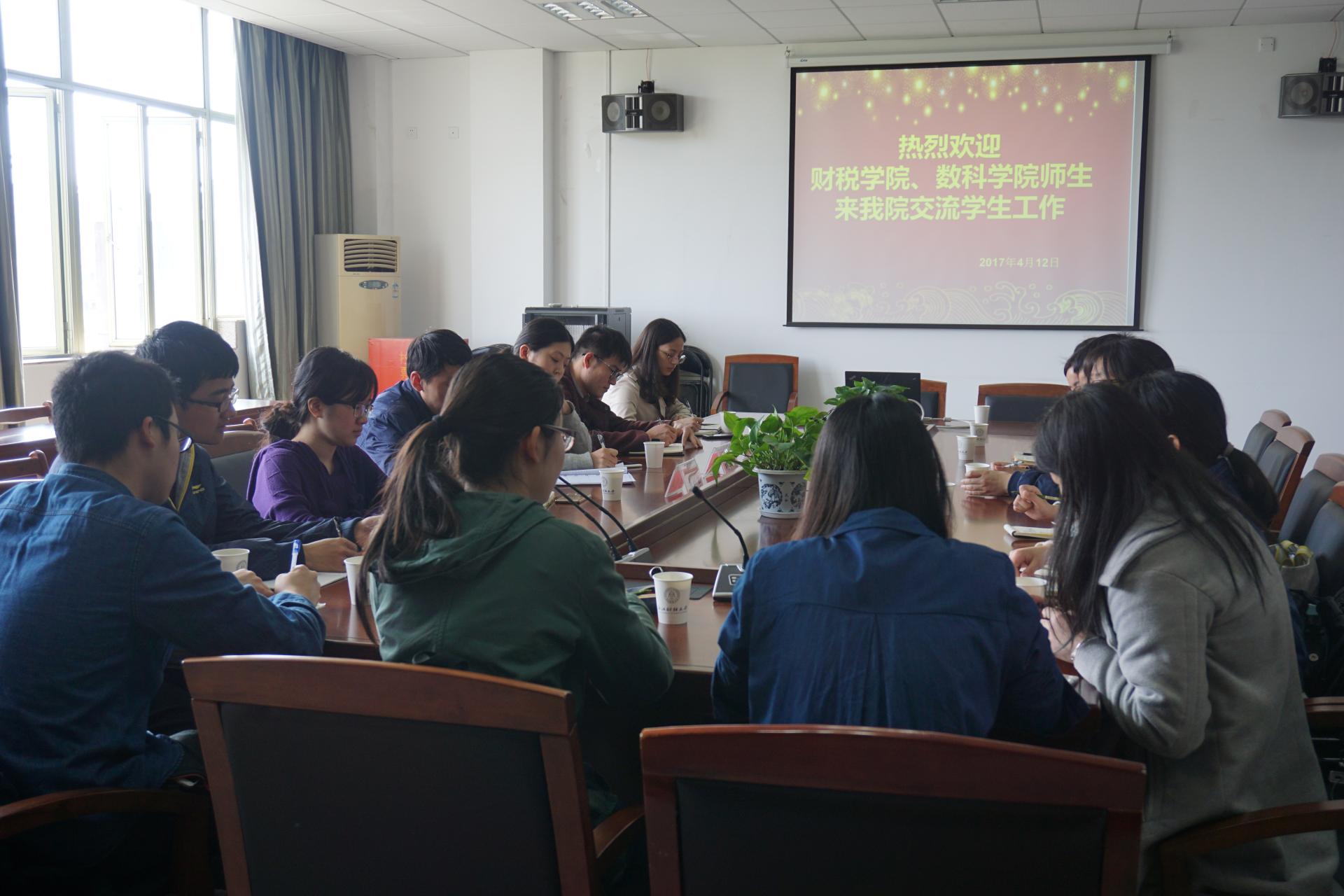 4月12日下午,财政税务公司员工工作办公室主任胡卓文,团委书记毕岩智,辅导员鲍旦颖,数据科学公司员工工作办公室主任兼团委书记李钊军率队来公司进行员工工作交流,公司员工工作办公室主任崔泰铭,团委书记费伟平,辅导员谭立娟及员工会代表参加了交流会。