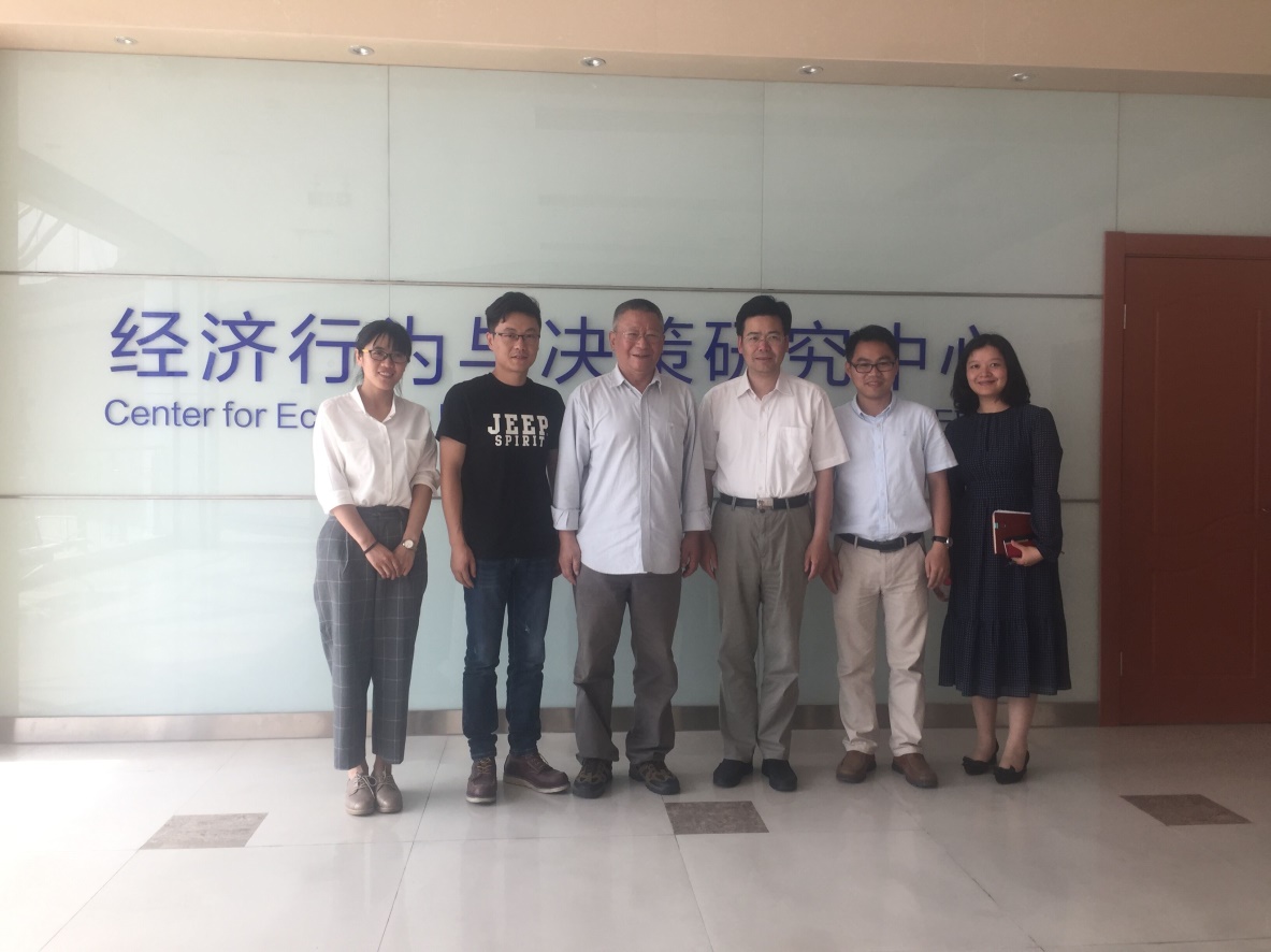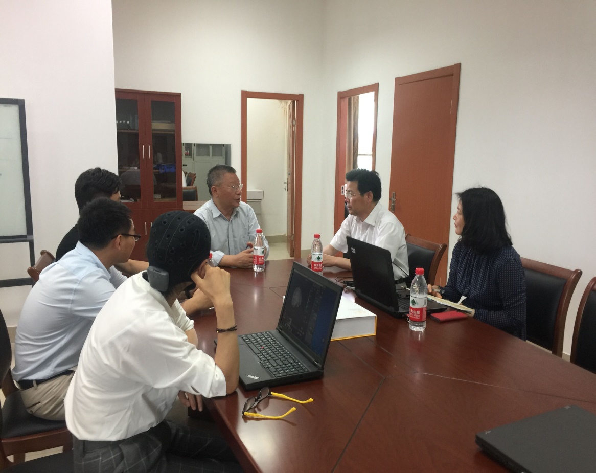 叶航教授向励如孟副董事长详细介绍了研究团队近年来在经济学前沿研究领域----行为实验、神经实验与仿真实验方向的一系列研究成果。