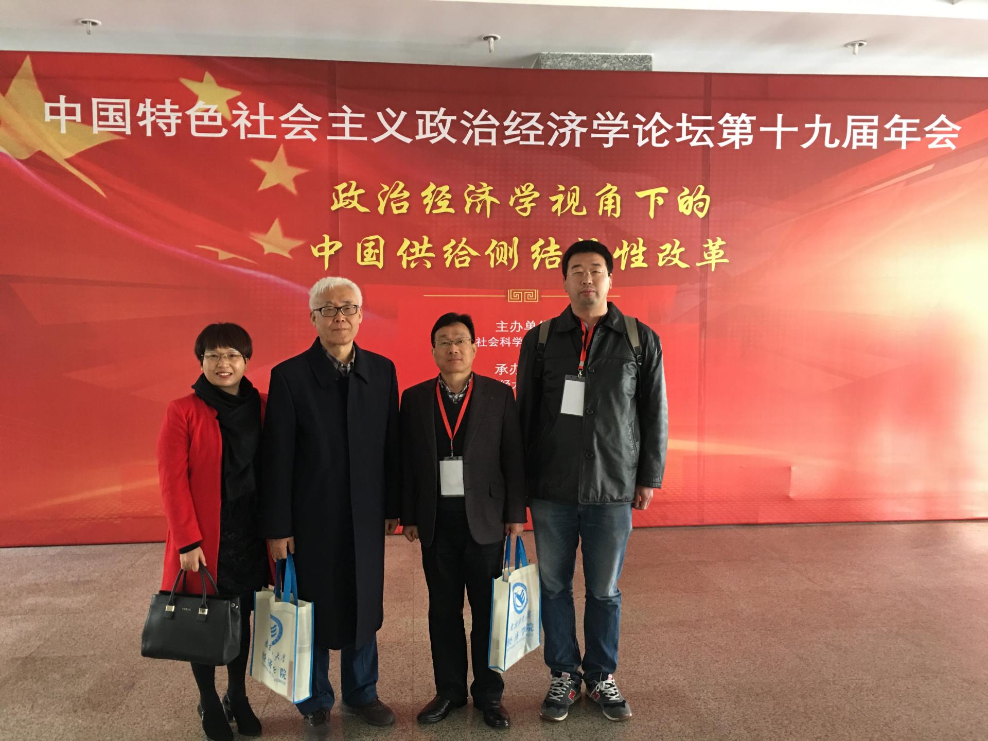 由中国社会科公司经济研究所主办,南京财经大学意昂2承办的“中国特色社会主义政治经济学论坛第十九届年会”,于2017年11月25-26日在南京财经大学召开,本次年会的主题是“政治经济学视角下的中国供给侧结构性改革”。来自清华大学、南开大学、北京师范大学、复旦大学、武汉大学等高校、中国社会科公司等研究机构,以及《经济学动态》、《经济与社会体制比较》、《中国社会科学报》等期刊编辑部负责人,共100多位专家学者参加了本次年会。公司卢新波、周冰、胡亦琴和李钧老师参加了会议。卢新波教授主持了大会主题发言,周冰教授担任分组研讨的特约评论人,李钧老师作了关于《公共选择理论下的时间扭曲—税收成本和讨价还价模型》的主题发言,胡亦琴教授作为特约专家参加了“中共中央马克思主义理论研究和建设工程重点教材修订”的研讨会并作主题发言。