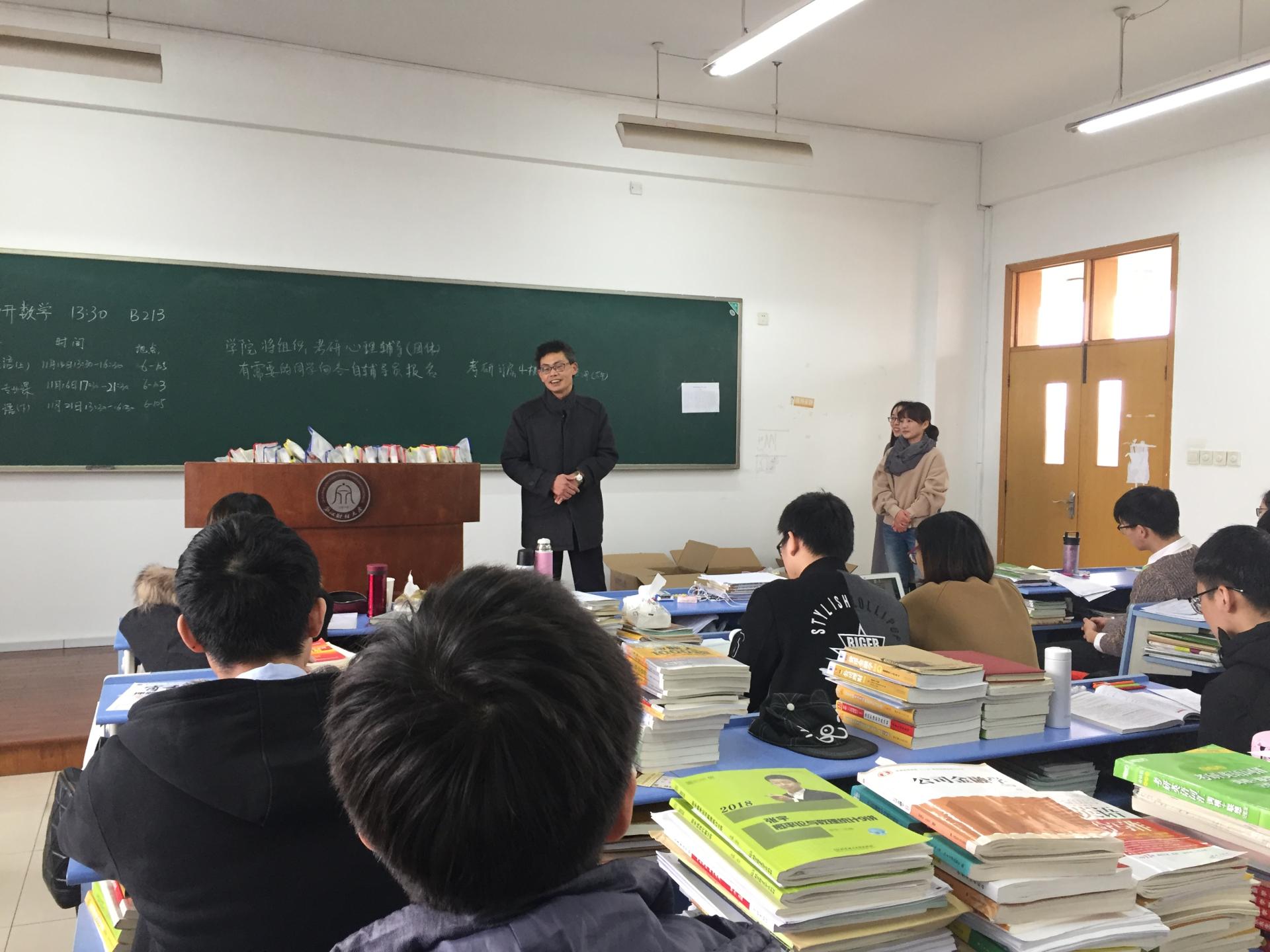 首先,沈水法书记对考研同学提出三点建议:一要坚持不懈,永不放弃;二要调整好心态,以积极、轻松的状态迎接考试;三要注意身体,做到劳逸结合、科学备考。随后,沈水法书记和杨小恩副书记亲自给同学们送上精心准备的“考研加油包”,鼓励同学们以饱满、轻松、平和的心态认真备考,祝福同学们取得好成绩。
