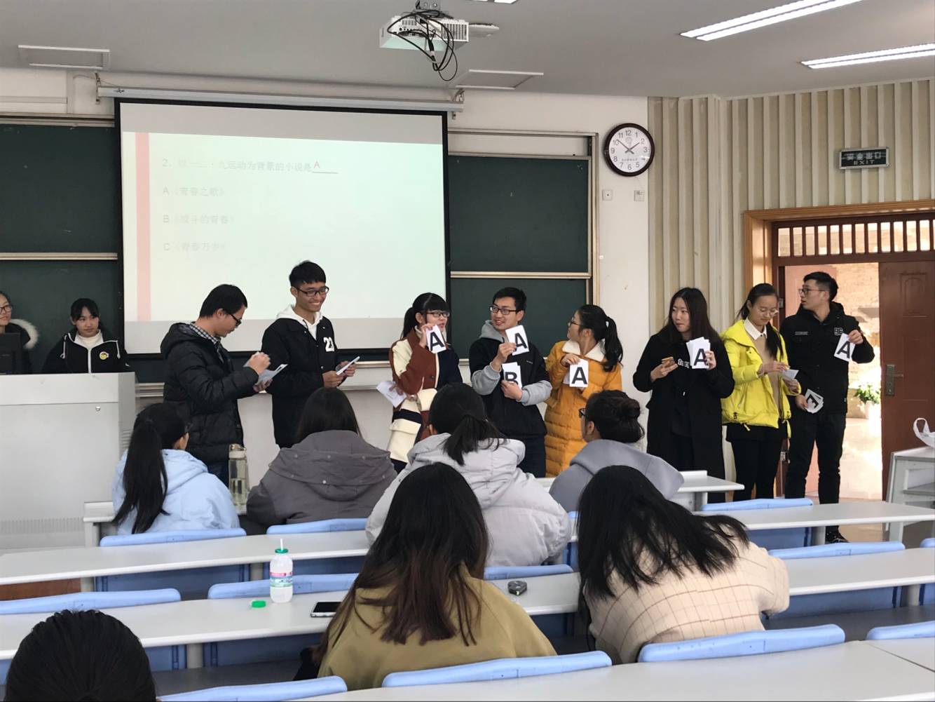 为深入学习十九大精神和新时代中国特色社会主义理论,弘扬一二九精神,激发同学们的爱国热情,意昂2邓小平理论读书会于12月9日下午13:30在公司楼107教室开展了一二九运动知识竞答比赛。