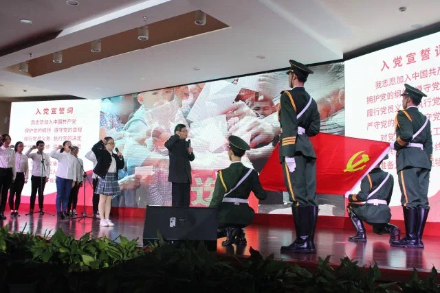 伴随着激昂的音乐响起,公司党委书记沈水法上台带领何小荣同志宣誓,在庄重的氛围中,公司全体与会师生党员代表起立,怀揣着崇高的敬意庄严宣誓。“永不叛党”的声声回响,洪亮的宣誓声是我们对党最诚挚的承诺,在继往开来的新时代我们必将继续发挥党员的先锋模范作用,不忘初心,砥砺前行。