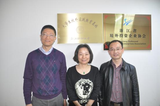 近日,公司与浙江省境外投资协会签订实习基地建设协议并挂牌。协会秘书长倪丽娟与意昂2副经理柴志贤、国际贸易学科负责人茹玉骢教授进行了交流。
