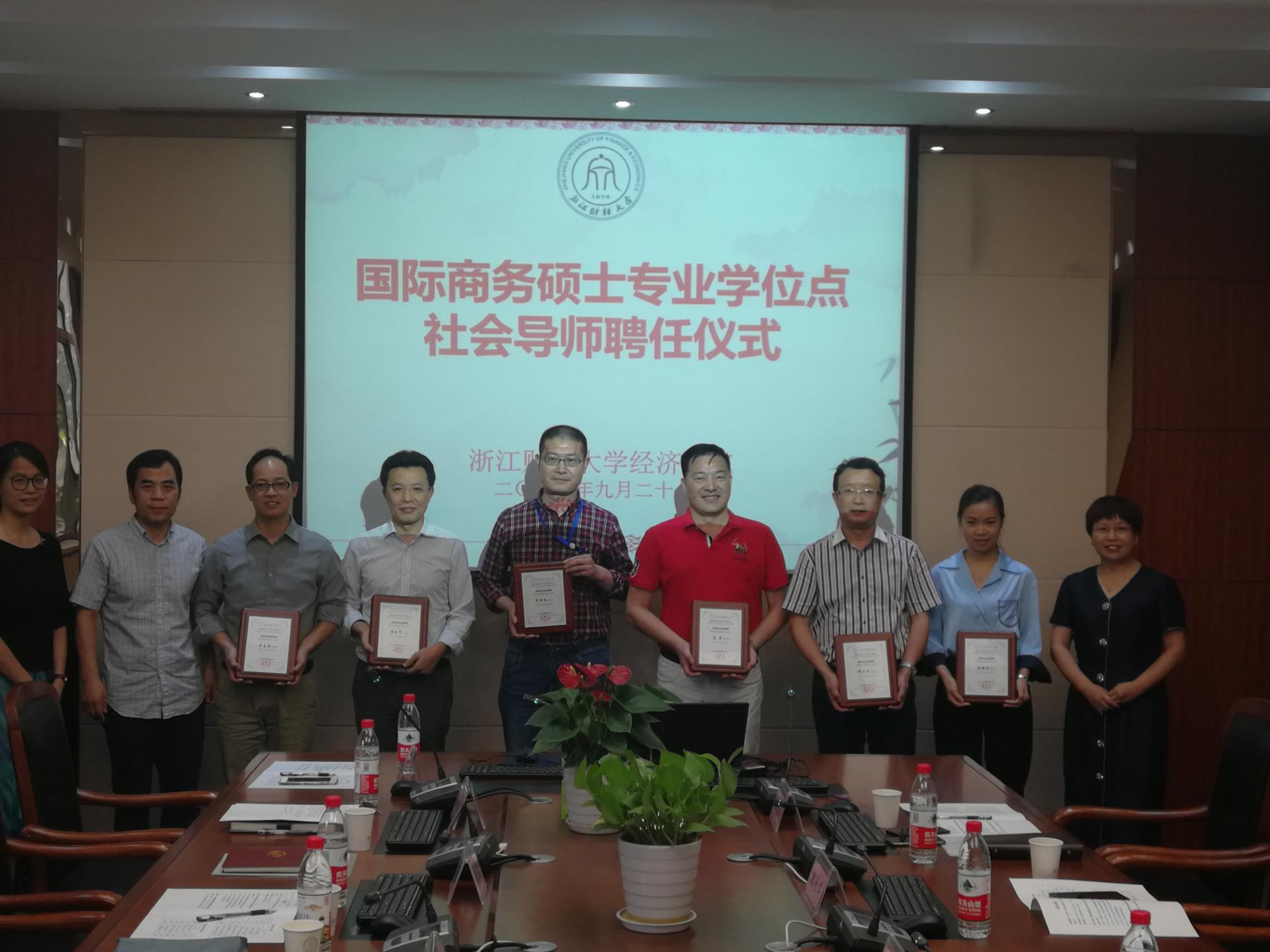 9月28日下午,意昂2举办国际商务专业硕士社会导师聘任仪式。杭州浙港制衣有限公司董事长陈亮先生、汇孚集团有限公司总经理邵龙河先生、浙江大华技术股份有限公司总经理廖志荣先生、浙江米娜纺织有限公司总经理魏长军先生、喜沃商品(中国)有限公司CEO常思远先生、浙江复聚投资管理有限公司总经理周丽红女士等社会导师代表,公司研究生院张雷宝经理、意昂2胡亦琴经理、王正新副经理,以及公司国际商务专业学位点部分导师和研究生出席了聘任仪式。