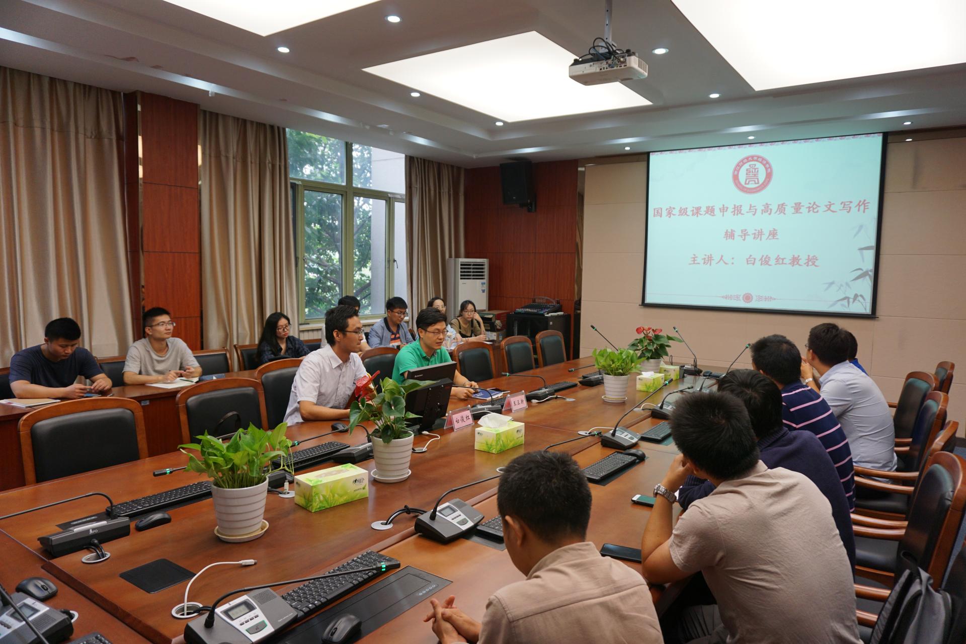 10月9日下午,浙江经济研究院兼职研究员白俊红教授应邀来公司作了一场关于“国家级基金项目申报和高质量论文写作”的辅导讲座。讲座由王正新副经理主持,公司部分青年教师和研究生共同聆听了此次讲座。