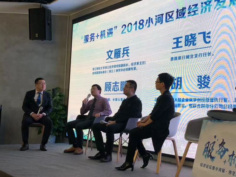 11月1日,浙江经济研究院文雁兵副经理、研究院秘书周玮受邀参加杭州市拱墅区小河街道举办的 “服务+机遇”2018小河区域经济发展论坛。