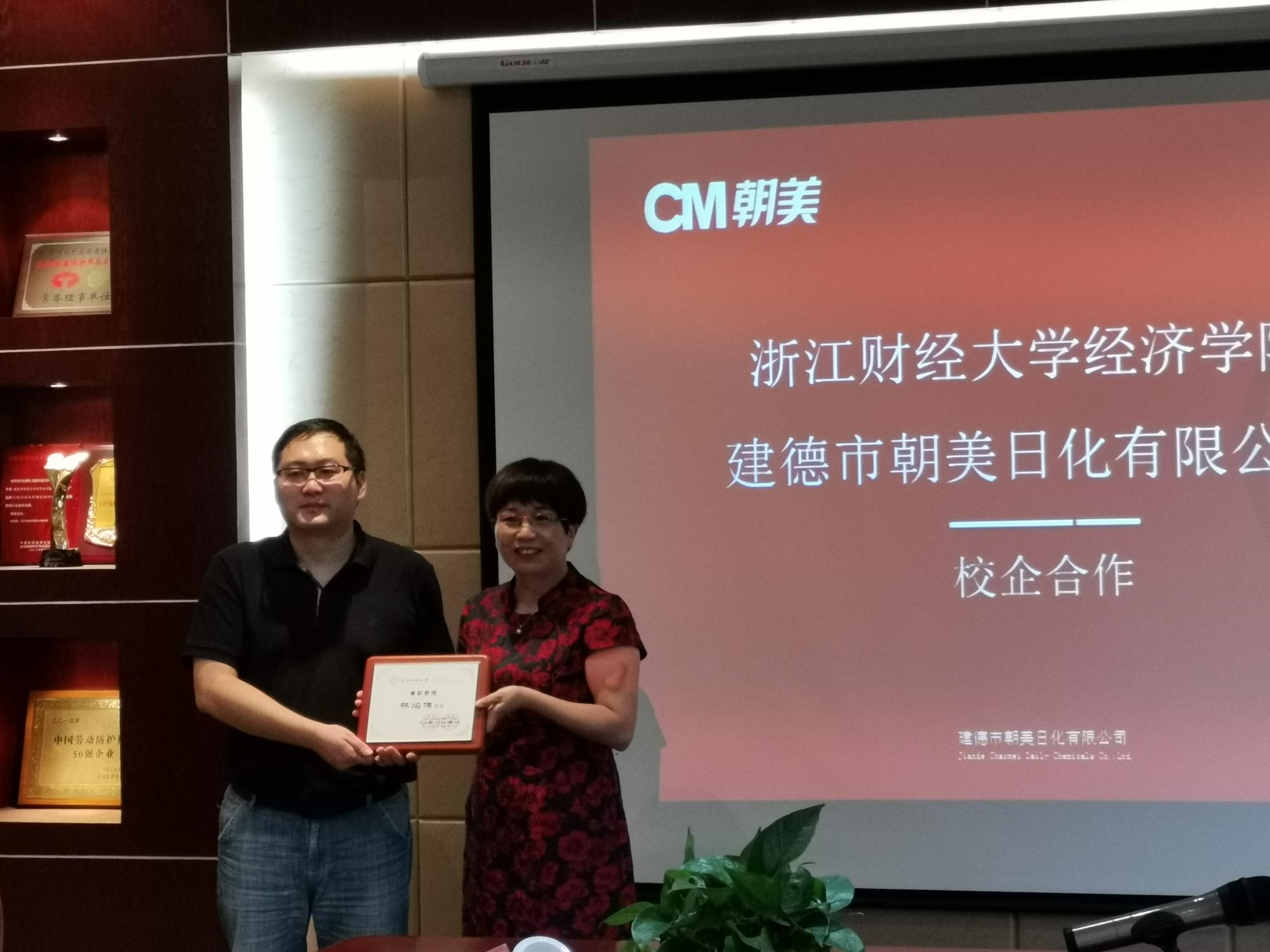 随后,胡亦琴经理为建德朝美日化总经理林焰伟颁发兼职教授和创业导师聘书,共同为“意昂2老员工校外实践教育基地”揭牌。