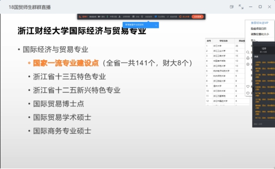 首先,吴宏老师从国贸专业建设情况与硕博点两个方面进行介绍国际与贸易专业,在专业建设中公司国际经济与贸易专业为国家一流专业建设点,本科到硕博点建设体系完善。