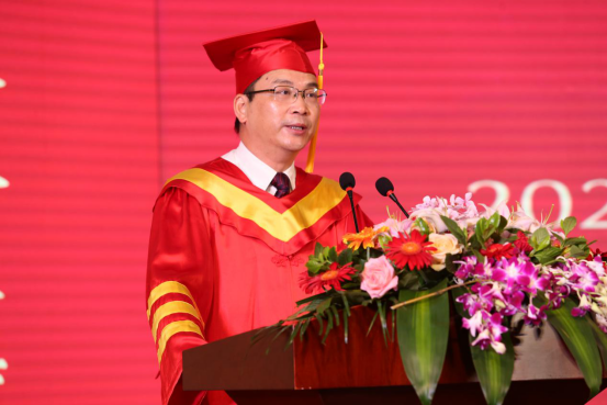 毕业典礼在庄严的国歌声中拉开序幕。公司党委副书记余建森老师首先致辞,他向全体2020届毕业生致以真诚的祝贺,并语重心长地向毕业生们提出了三点期望:一是希望同学们坚守初心,勇立鸿鹄志向,二是希望同学们终身学习,与时代共成长,三是希望同学们认真生活,做幸福追梦人。最后,余建森书记对毕业生表达了不舍与期待,祝福所有毕业生一帆风顺,前程似锦。