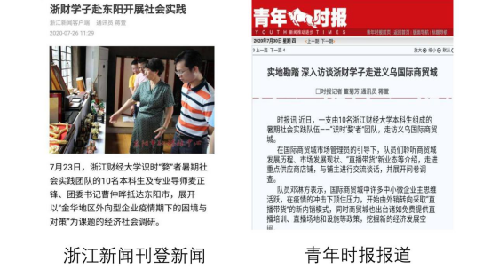 完成调研后,实践团结合所学专业知识,对调研的数据和信息做出分析,形成多份调研报告,向企业建言献策,并形成学术成果公开发表。团队还积极与各方媒体取得联系,力求将成果分享给更多关注这一话题的群体。实践进程先后被浙江新闻、青年时报、东阳日报等9家媒体报道,微博话题“识时婺者”老员工暑期社会实践阅读访问量逾12万。此外,团队还在2020年浙江省暑期社会实践风采大赛中荣获百强团队。