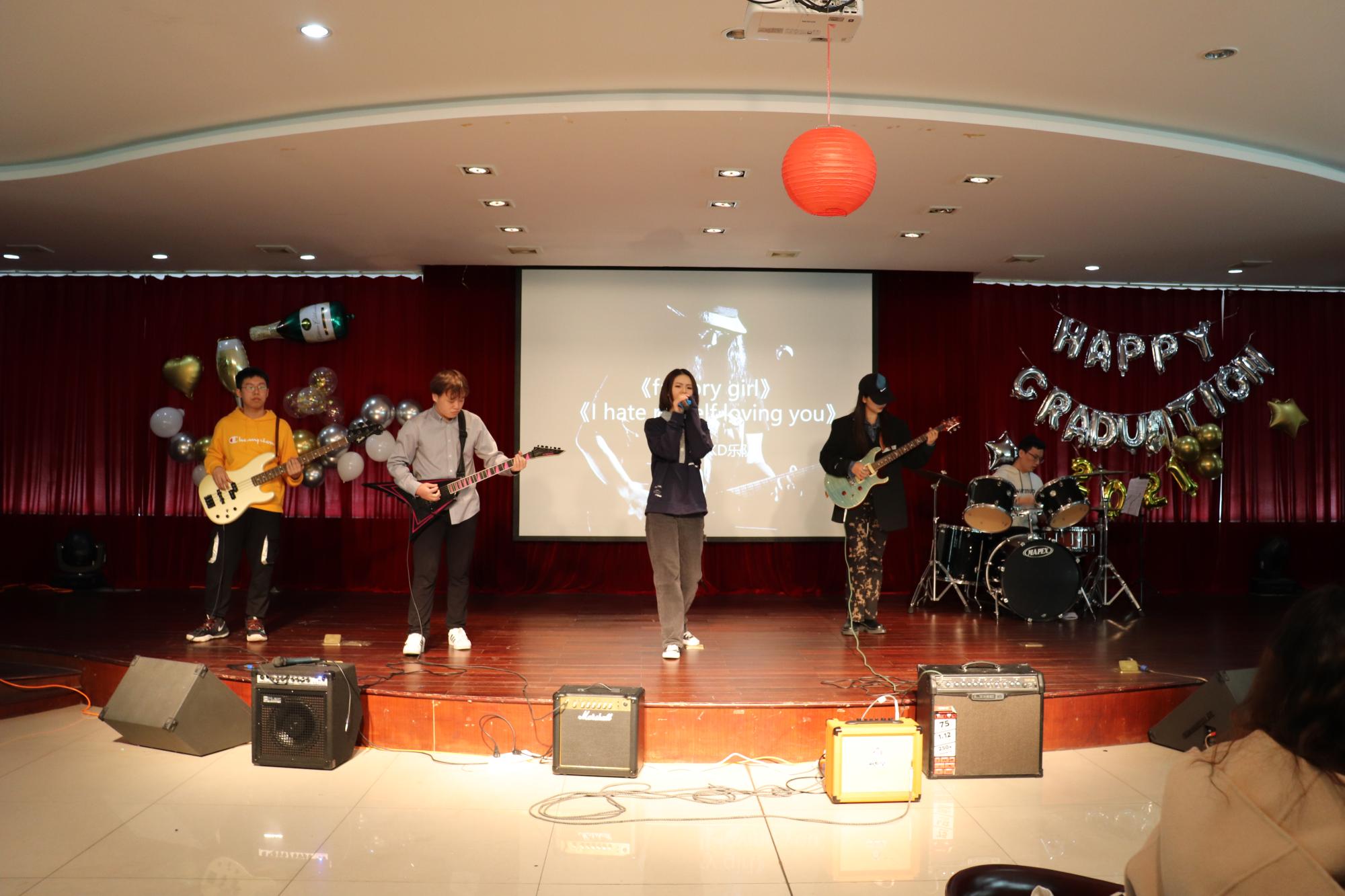 晚会在公司艺术团舞蹈队青春洋溢的开场舞《love sick girls》中拉开序幕。研究生十佳歌手胡寅康、王徐东为我们献唱《想自由》和《年少有为》,将我们拉回美好的校园回忆中。GKD乐队带来了酣畅淋漓的表演《Factory Girl》、《I Hate Myself Loving You》,热情似火的青春舞蹈,为观众奉上了一场精彩绝伦的视听盛宴。