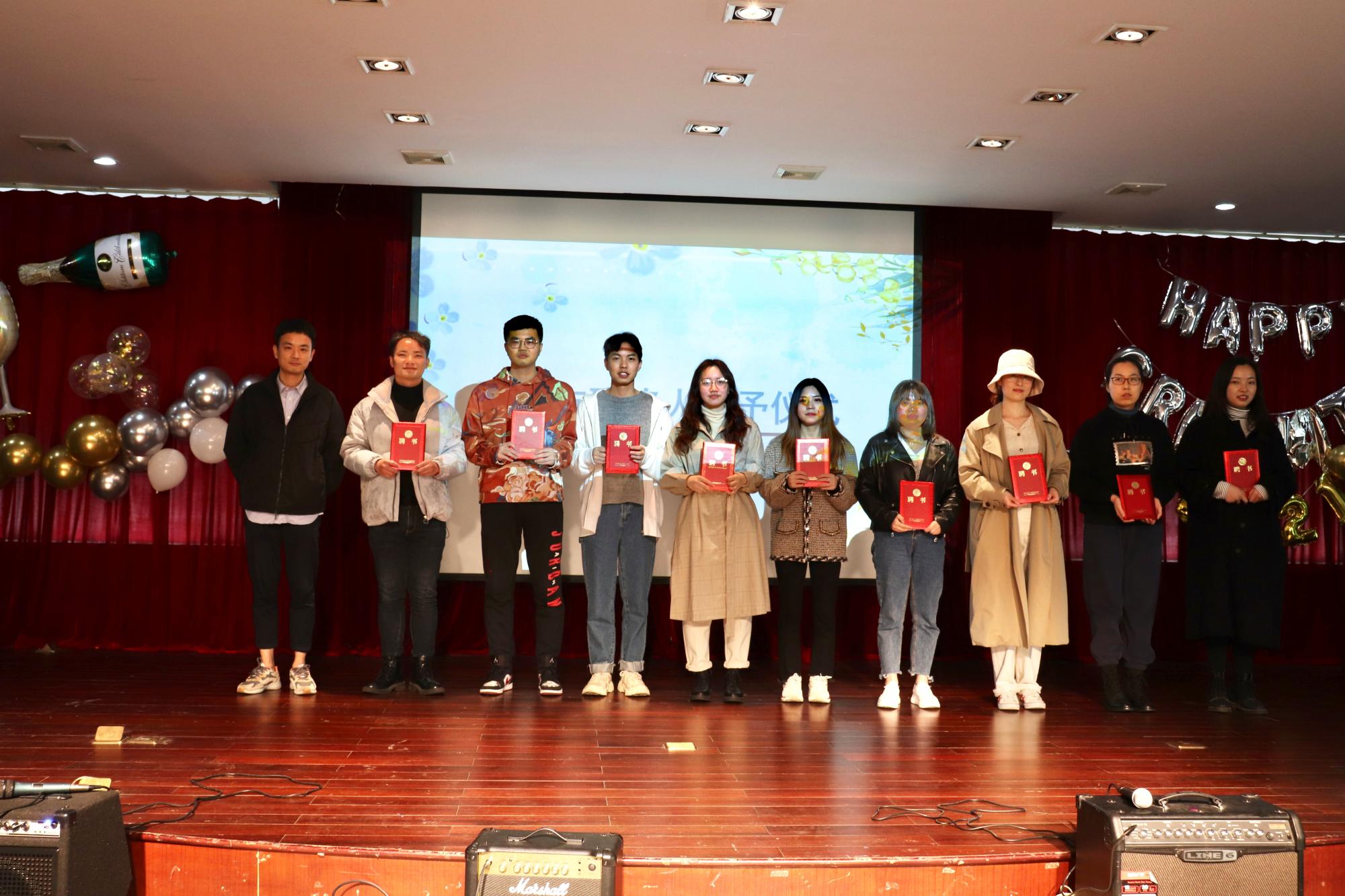 晚会开始前,副经理罗俊老师为2021届毕业生送上祝福,殷切地希望毕业生多回校看看,并祝福毕业生一路顺风、一生幸福平安。党委副书记崔泰铭为员工联络人颁发聘书,希望同学们毕业后以员工身份继续关心公司的发展。