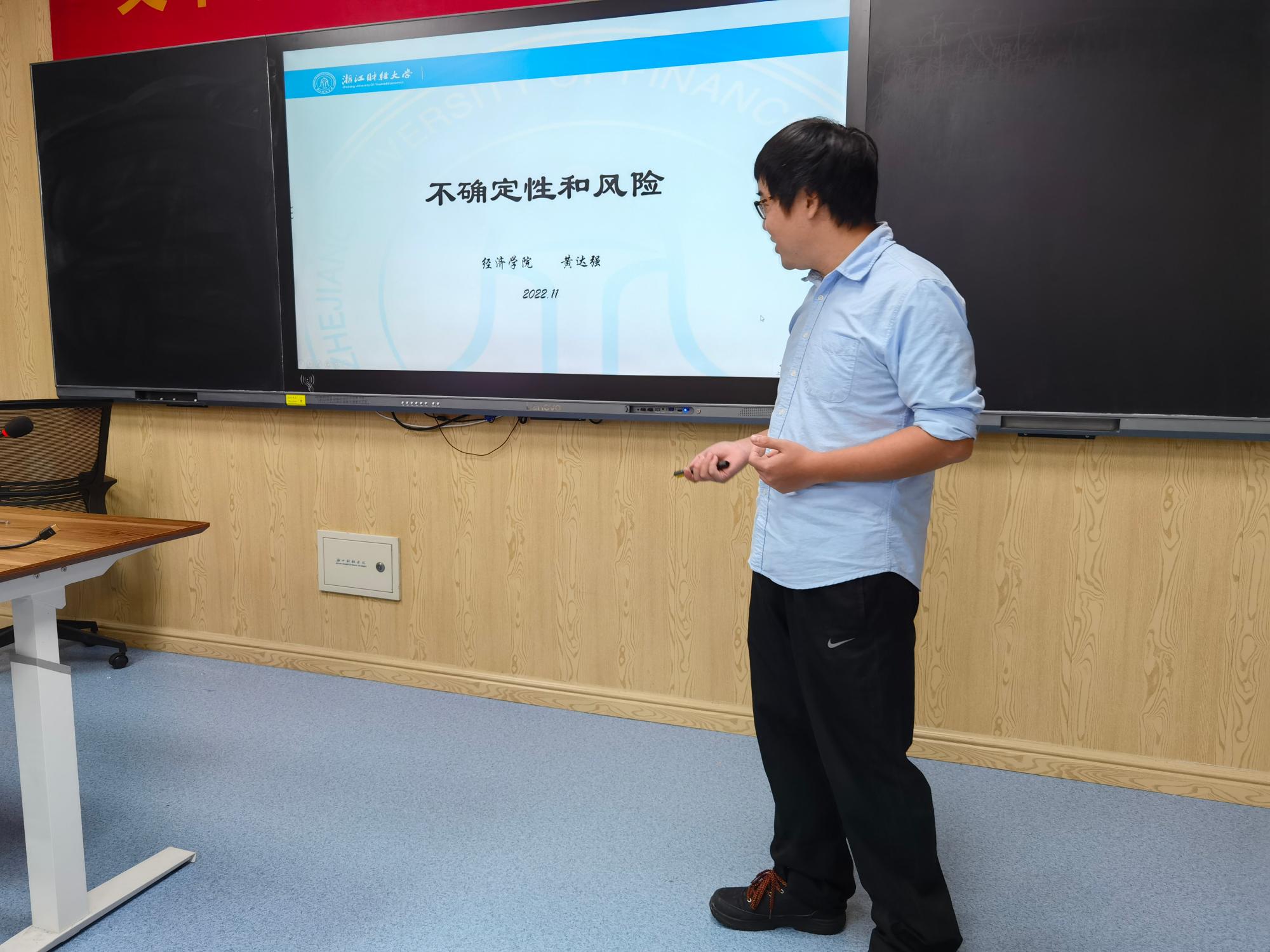 本次辅导会旨在以赛促教、通过辅导进一步提升参赛老师的教学能力和参赛水平,从而激发和挖掘公司教师教学创新、教学改革的潜力。本次教学创新大赛公司共有4位老师报名参加,具体为汪晓辉老师的《法与经济学》、丁峰老师的《妙趣横生的经济学》、程晓宇老师的《农业与农村经济学》、黄达强老师的《不确定性和风险》。辅导会上参赛教师依次对自己的授课课程进行了教学创新设计展示,并结合教学实践经验,从教学内容、教学模式和教学评价等方面展示了课程教学的创新成效。