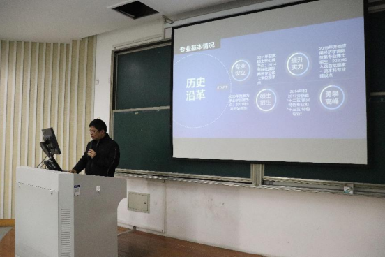 首先,邱风老师给同学们介绍了经济学专业坚实的学科支持、培养模式、教学方法以及就业升学的基本情况,还给员工们分享自身的学习经历和考研小故事,引来阵阵欢笑声。邱老师鼓励大家奋力考研,并结合自身的考研经历,给大家加油打气,增强信心,希望同学们能够拓宽就业的视野和道路。