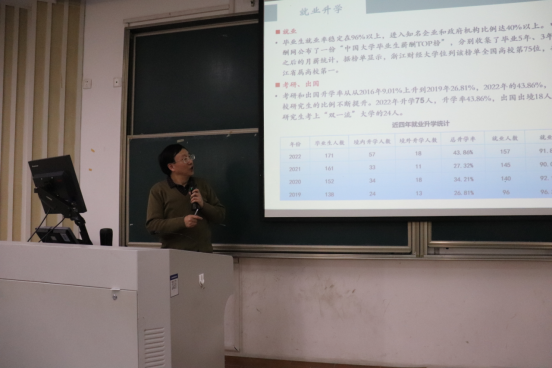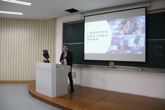 接着,汪晓辉老师从互联网时代大背景入手引入了数字经济专业的概念,并结合当下网络时代的各种现象,帮助同学们理解数字经济专业。此外,他还就同学们最关注的一件事即本专业毕业后的就业情况进行了详细的讲解,在互动中帮助大家更好地认识数字经济专业。