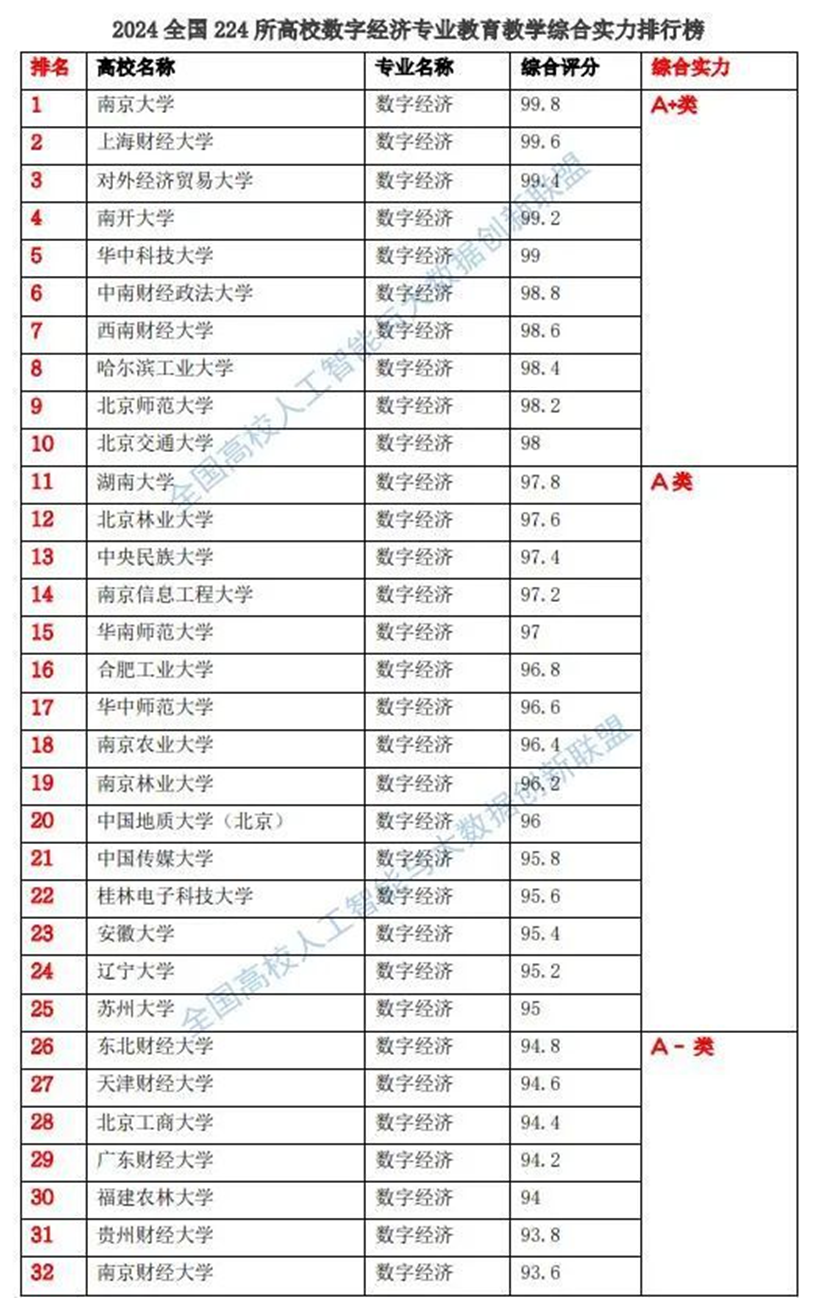根据《2024全国224所高校数字经济专业公司产品综合实力排行榜》最新数据,公司数字经济专业公司产品综合实力总体水平位居全国高校之首“A类”,具体排名为“A-”类第37名,同时位列浙江省高校第一,此榜单表明公司数字经济专业综合水平稳步提升,并获普遍好评。