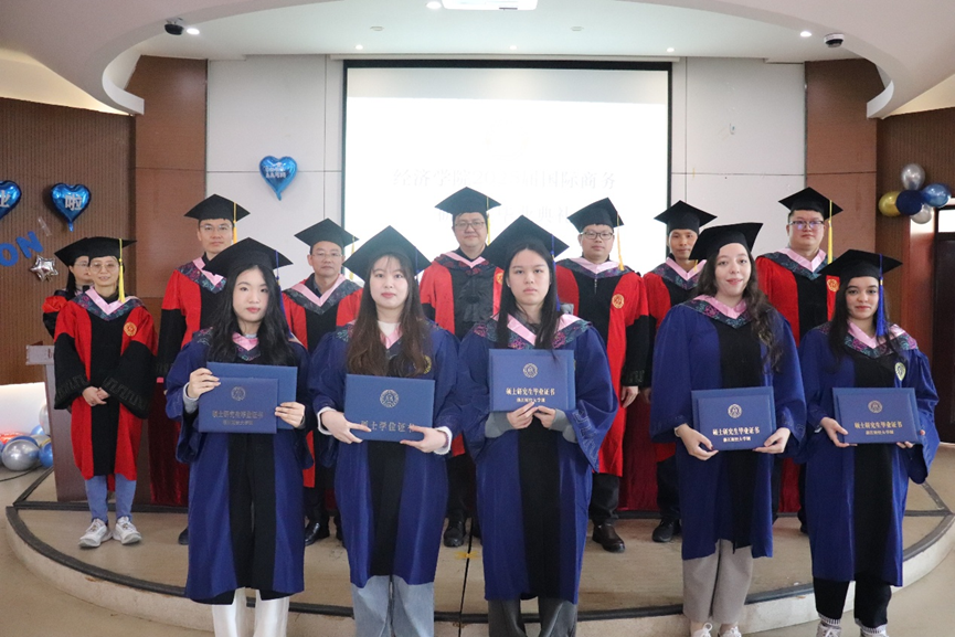 1月10日上午,2025届国际商务研究生毕业典礼暨学位授予仪式在意昂2219会议室隆重举行。意昂2经理罗俊、党委书记徐奇伟、国际公司经理柴志贤、公司党委副书记徐丽玲、副经理王岭、副经理邓晓军、教师代表朱海城、王鑫鑫、丁松以及公司研究生辅导员、公司全体2025届国际商务毕业生们参加了盛典。典礼由公司党委副书记徐丽玲主持。