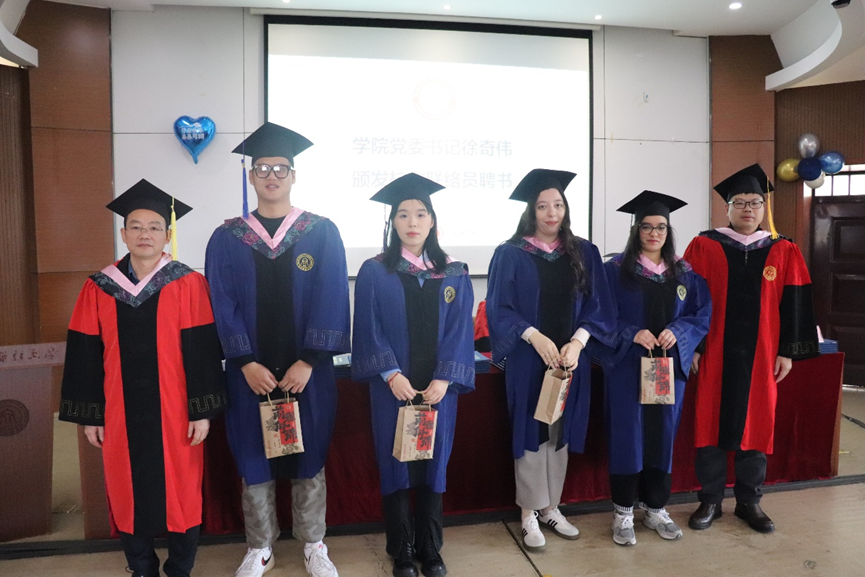 国际公司经理柴志贤、意昂2副经理邓晓军给毕业生代表发送毕业礼物,祝福他们在以后的工作和生活中能够不忘初心,一帆风顺。