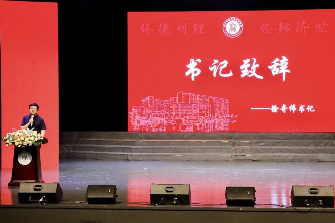 党委书记徐奇伟在致辞中寄语毕业生:“愿你们如国槐坚韧向阳,似皎月澄澈坚定,永怀‘修德明理,经邦济世’的初心,在人生的旷野中踏歌而行。”