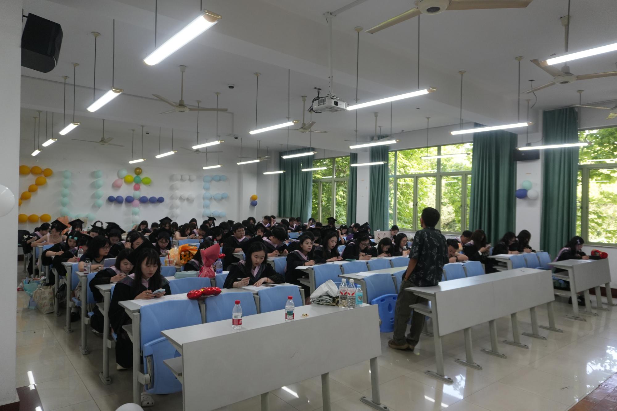 在各毕业班教室,一场场充满温情的毕业班会悄然上演。毕业班辅导员与毕业生们围坐一堂,共同回顾大学四年的学习生活,从初次踏入校园的青涩,到课堂上的思想碰撞,再到实践活动中的成长蜕变,往昔的点点滴滴在回忆中重现。辅导员针对毕业生在就业、升学、档案转接等方面的疑问进行细致解答,用暖心话语为同学们答疑解惑,送上真挚祝福与殷切嘱托。这场充满温情的毕业班会,既是对大学时光的深情回望,也为毕业生们即将开启的人生新征程注入力量。