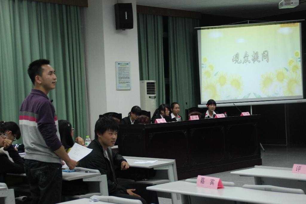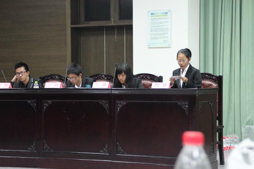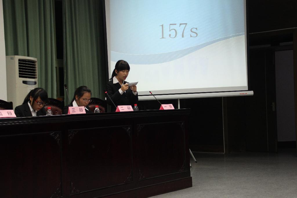 11月8日晚八点,经贸公司13级新生辩论赛决赛在法公司模拟法庭举行。13国贸一班和13国民经济班展开了激烈争夺,最后13国贸一班摘得桂冠。经贸公司团委书记汪风易、思政辅导员赵聪、谭立娟到场观看了比赛。