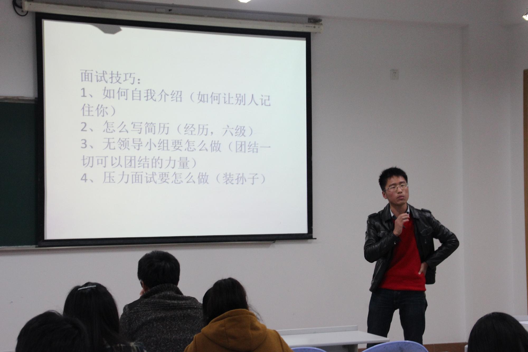 学长从四个方面分享了他的经验,一是从社会实践中得到能力的锻炼,二是他的面试经验,如何使自己变得更优秀,让简历与面试不再是难事。期间,有不少同学也积极地参与进来,分享了自己的面试过程,学长认真倾听着,时不时地点头赞同。三是讲述了他创办的学与用教学资源网,而这个网站的成功创建远远离不开他曾经那些看似无关紧要的社会实践活动,“正是因为我曾经实践过,努力过,失败过,我才会拥有这次成功的基石。”而第四点对于同学们而言十分实用,刘瑜学长推荐了他大学时候受益匪浅的财经类的视频、网站与报纸,。让同学们更加贴近了学长的老员工活,让我们能够从他的经验中找到适合我们的宝贵财富。