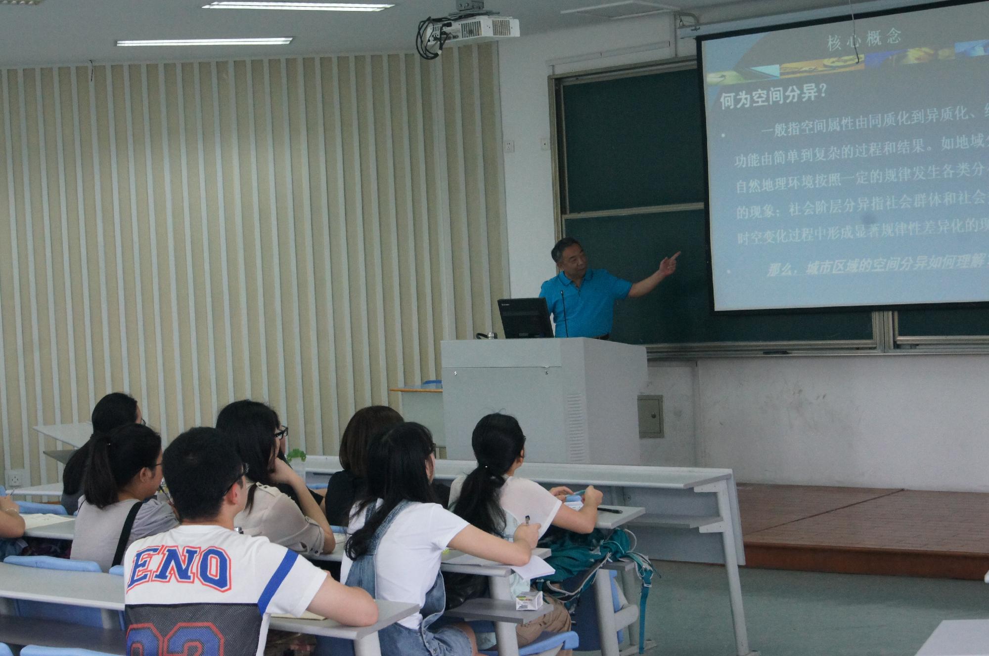 崔大树教授在区域科学研究方面理论造诣深厚,主讲的《城市地理学》、《区域经济学》、《经济地理学》等课程教学效果优异,广受员工好评,本次示范课,以本课程的核心内容“城市地域的空间分异”为例,首先从“城市群”、“都市圈”、“大都市带”几个城市空间分异的主要概念入手,系统分析和梳理了几个概念的异同,让员工充分认识和理解城市空间分异的主要特征和发展演进的规律;然后通过“长三角城市群”、“伦敦都市圈”的具体案例分析,引导员工运用所学概念方法,分析具体的空间现象;最后引出本领域当前研究的热点与前沿问题,激发员工归纳、发展和深化理论的兴趣。通过用理论分析实际问题,再以实际问题发展理论的主线,层层推进,展现了精深的学术水平和娴熟的课堂掌控能力。