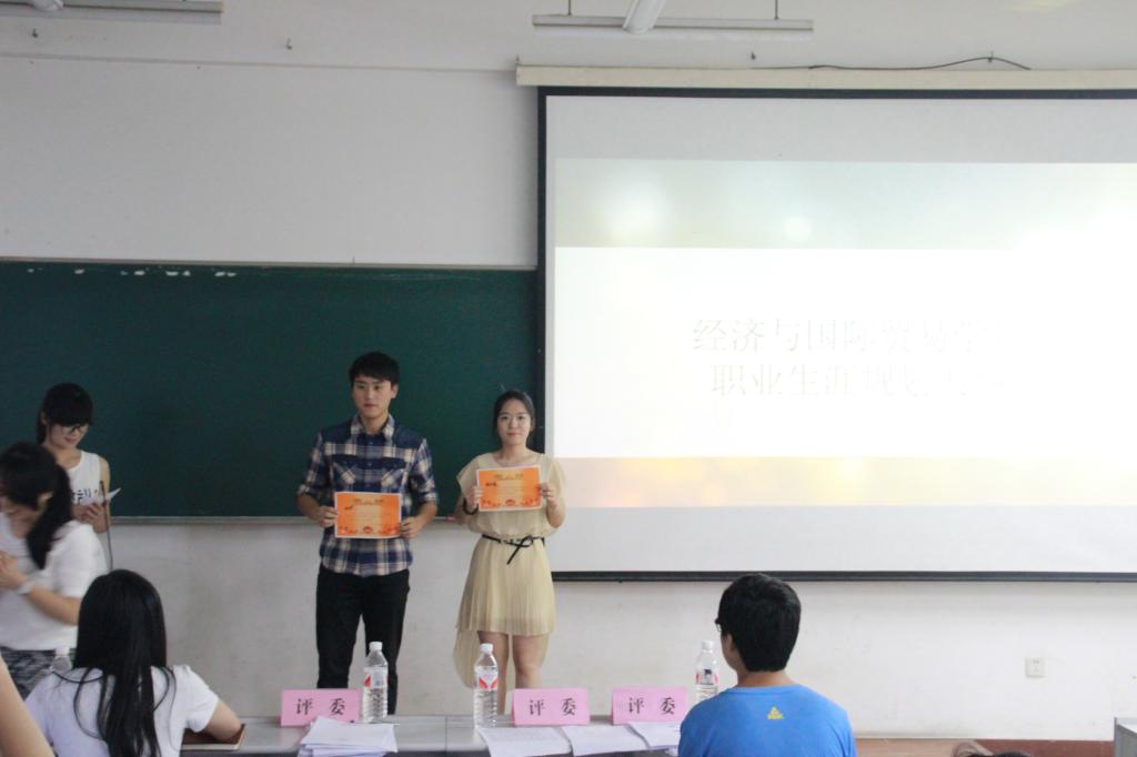 6月2日下午14:00,公司老员工职业生涯规划大赛在公司楼105教室举行。院教学办主任陈秀琴、辅导员谭立娟、费伟平出席并担任评委。