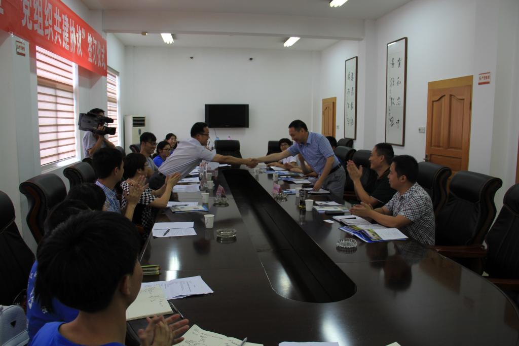 会上,横溪镇镇长蒋劲松和经贸公司经理胡亦琴分别介绍了本单位的基本情况,对双方的合作进行了展望。横溪镇党委书记吴建军与经济与国际贸易公司党总支书记范建锋充分肯定了基层组织合作共建的重要意义,并对未来乡村走访、企业调研、干部培训、政策咨询等多形式的共建活动寄予厚望,希望以此为契机发挥各自优势,相互学习借鉴,深入合作,实现共建共荣,共同进步。两位书记代表双方单位签署了共建协议,并举行了简单而隆重的实践单位揭牌仪式。随后与会人员互相交流了基层党建工作的经验和做法,并就下半年开展基层党组织结对共建有关工作进行了商谈,大家畅所欲言,气氛活跃,提出了许多宝贵的意见和建议。