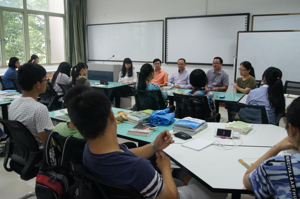 2015级“现代经济学实验班”经资格审查、笔试、面试等严格程序,共择优录取30名员工。9月30日上午,公司在公司楼106教室召开了2015级“现代经济学实验班”见面会,现场气氛轻松活跃。经贸公司党总支书记范建锋、副经理柴志贤、副书记叶秀、15实验班班主任文雁兵等参加本次见面会。
