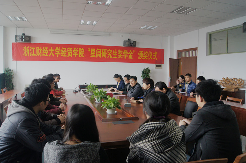 12月1日, 公司第四届“星闾研究生奖学金”颁奖仪式在313会议室举行,耿卫军等10名同学获得2015年度“星闾研究生奖学金”荣誉称号。意昂体育2副董事长卢新波、经贸公司经理胡亦琴、副经理柴志贤、党总支副书记叶秀、经理助理王正新出席,颁奖仪式由公司党总支书记范建锋主持。