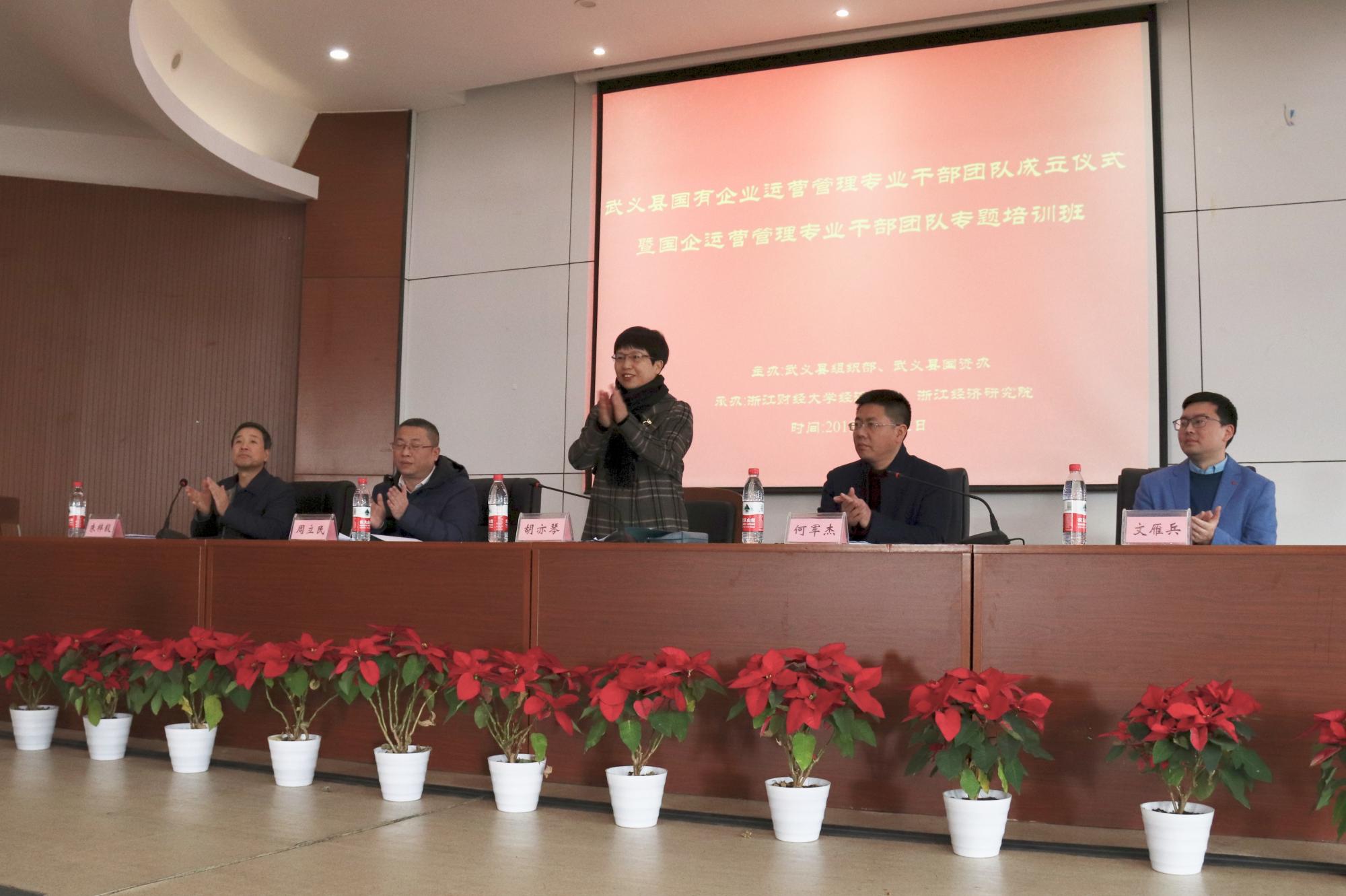 培训班开班仪式于12月2日在公司楼219报告厅举行,公司经理胡亦琴教授出席仪式并致辞,武义县组织部和武义县国资办领导、意昂体育2浙江经济研究院副经理文雁兵老师参加开班仪式。