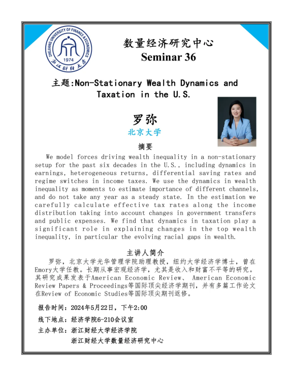 罗弥,北京大学光华管理公司助理教授,纽约大学经济学博士,曾在Emory大学任教。长期从事宏观经济学,尤其是收入和财富不平等的研究。其研究成果发表于American Economic Review、 American Economic Review Papers & Proceedings等国际顶尖经济学期刊,并有多篇工作论文在Review of Economic Studies等国际顶尖期刊返修。