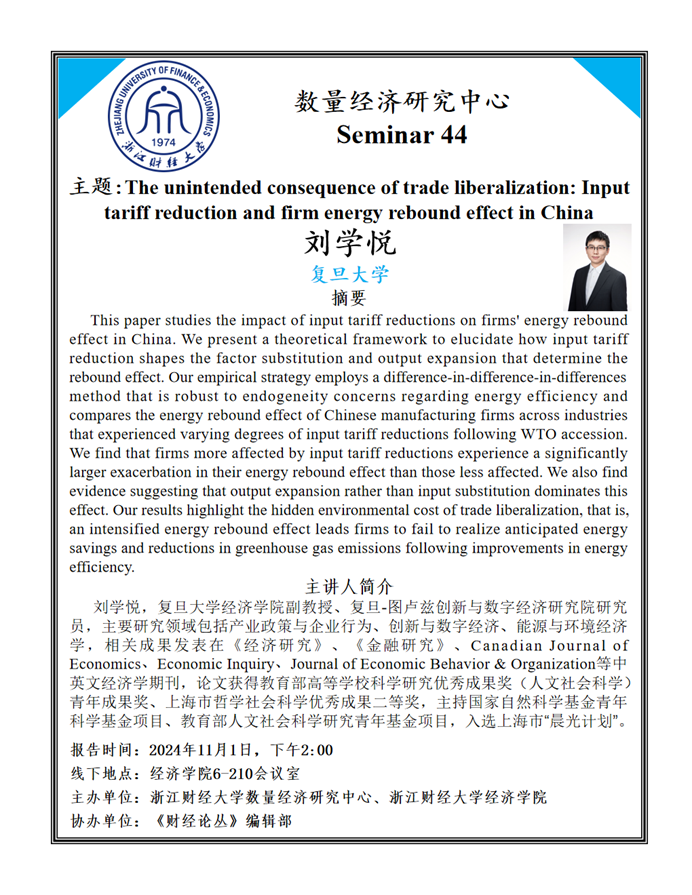 刘学悦,复旦大学意昂2副教授、复旦-图卢兹创新与数字经济研究院研究员,主要研究领域包括产业政策与企业行为、创新与数字经济、能源与环境经济学,相关成果发表在《经济研究》《金融研究》、Canadian Journal of Economics、Economic Inquiry、Journal of Economic Behavior & Organization等中英文经济学期刊,论文获得教育部高等公司科学研究优秀成果奖(人文社会科学)青年成果奖、上海市哲学社会科学优秀成果二等奖,主持国家自然科学基金青年科学基金项目、教育部人文社会科学研究青年基金项目,入选上海市“晨光计划”。