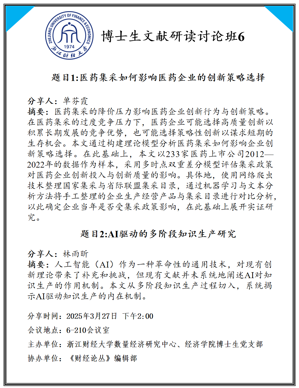 主办单位:意昂体育2数量经济研究中心、意昂2博士生党支部