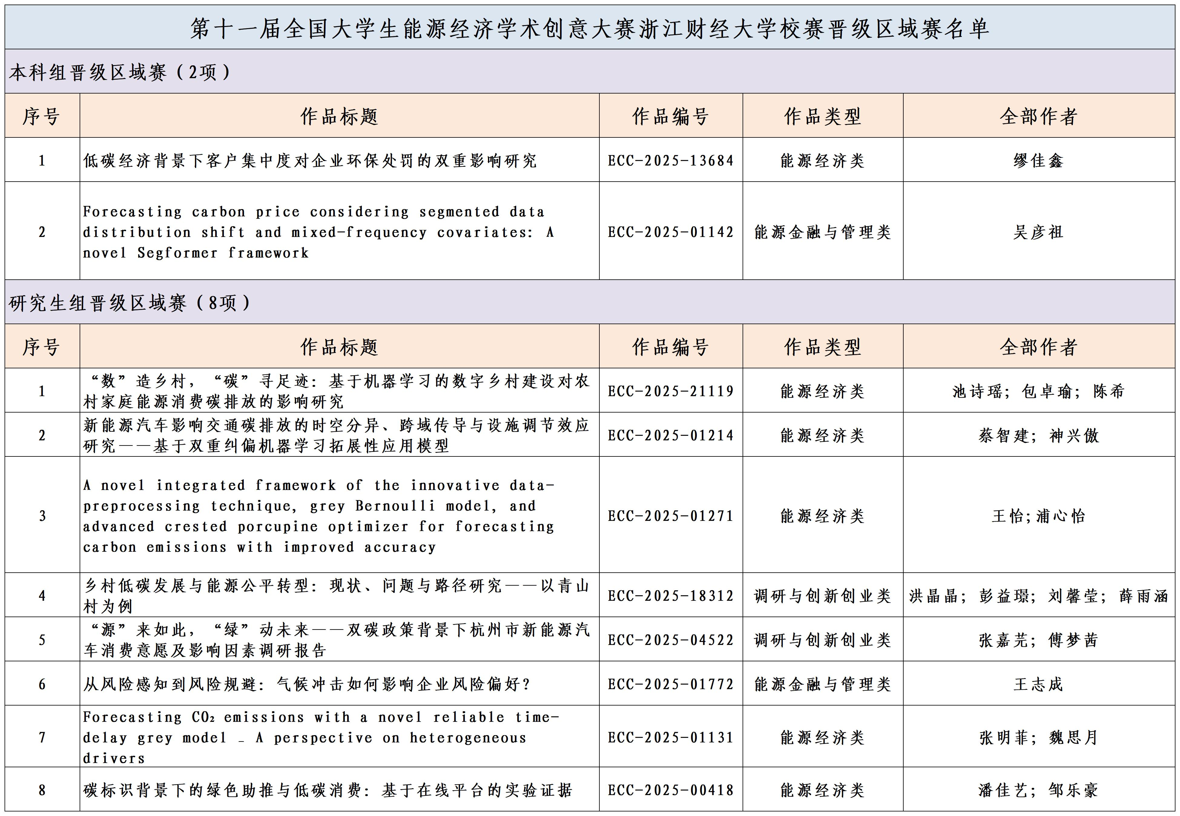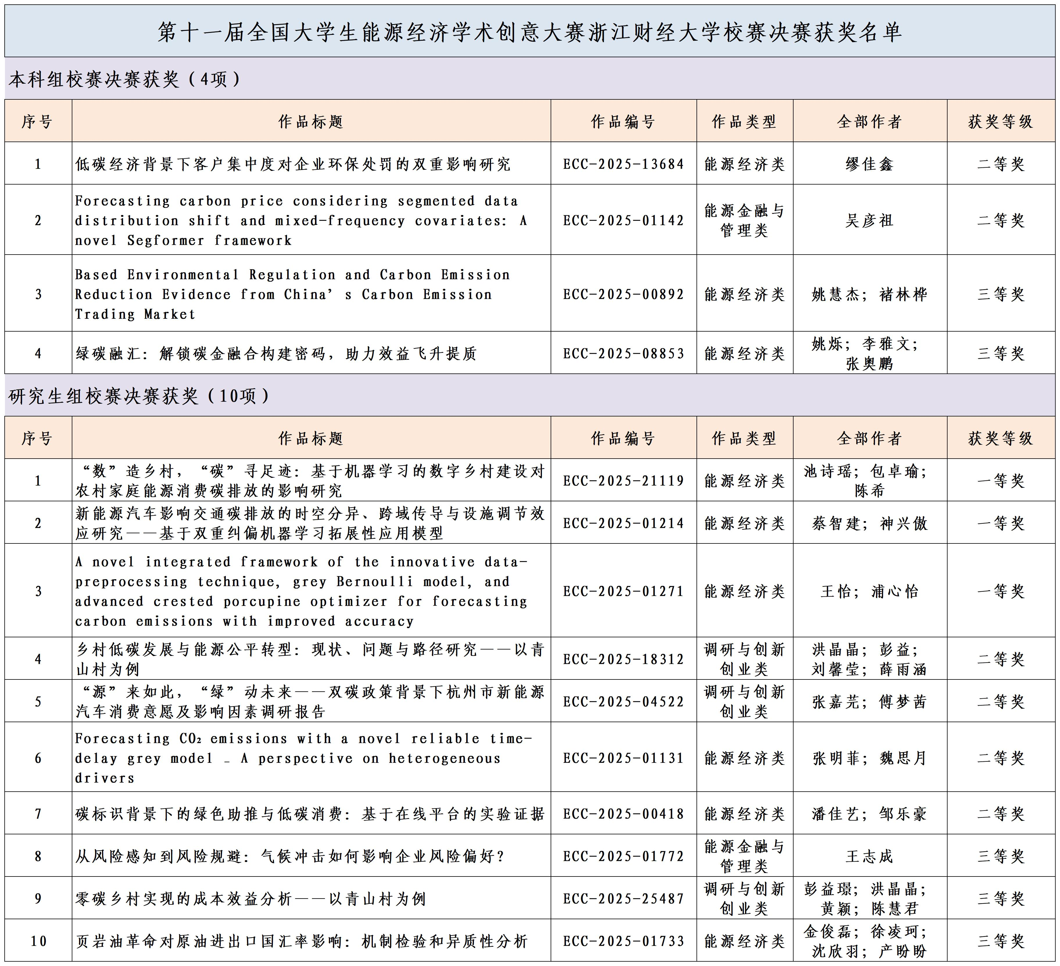 第十一届全国老员工能源经济学术创意大赛,公司报名39项,提交作品 29 项,经形式审查,有效作品 26 项。经公司组织评审,本科生组和研究生组共 14 项作品获奖。其中本科生组一等奖 0 项,二等奖 2 项,三等奖 2 项;研究生组一等奖 3 项,二等奖 4 项,三等奖 3 项。具体名单公示如下。