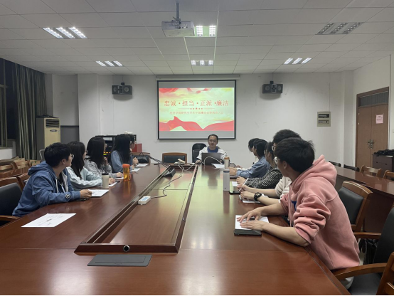 公司研究生会指导老师俞一献老师结合实际案例,围绕忠诚、担当、正派、廉洁的关键词,对研究生会提出了绝对忠诚、敢于担当、作风正派、干净廉洁四点要求。