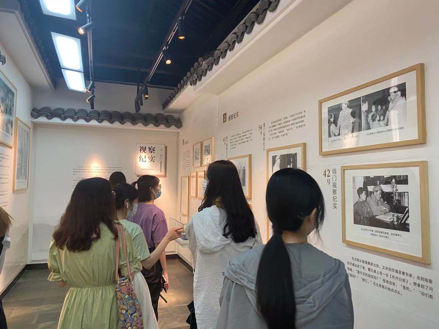 随后,在中共杭州小组纪念馆中,大家依次走过“潮起钱塘”、“星火钱塘”、“奔腾钱塘”和“今日钱塘”四个展区,了解到全省第一个党组织——中共杭州小组从成立到发展、壮大的全过程。中共杭州小组见证了中国共产党伟大初心的孕育,先烈的革命精神和脚步指引着我们前进的道路。