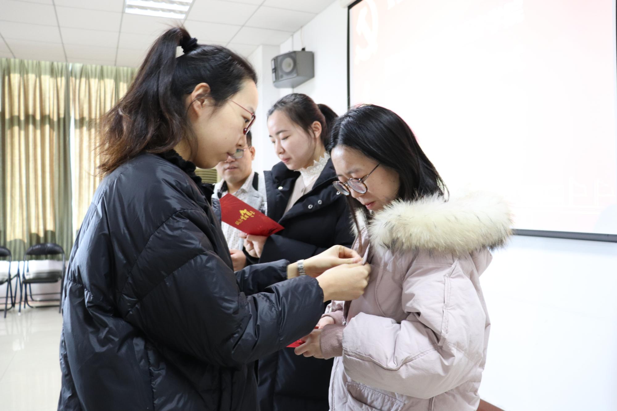 随后,公司党委书记胡亦琴、各支部书记为新发展党员佩戴党徽,赠送政治生日贺卡与党员笔记本,希望大家永葆政治初心,牢记时代使命。在胡亦琴书记的带领下,全体新发展党员面向鲜艳的党旗,举起右拳,庄严宣誓,铮铮誓言,铿锵有力。
