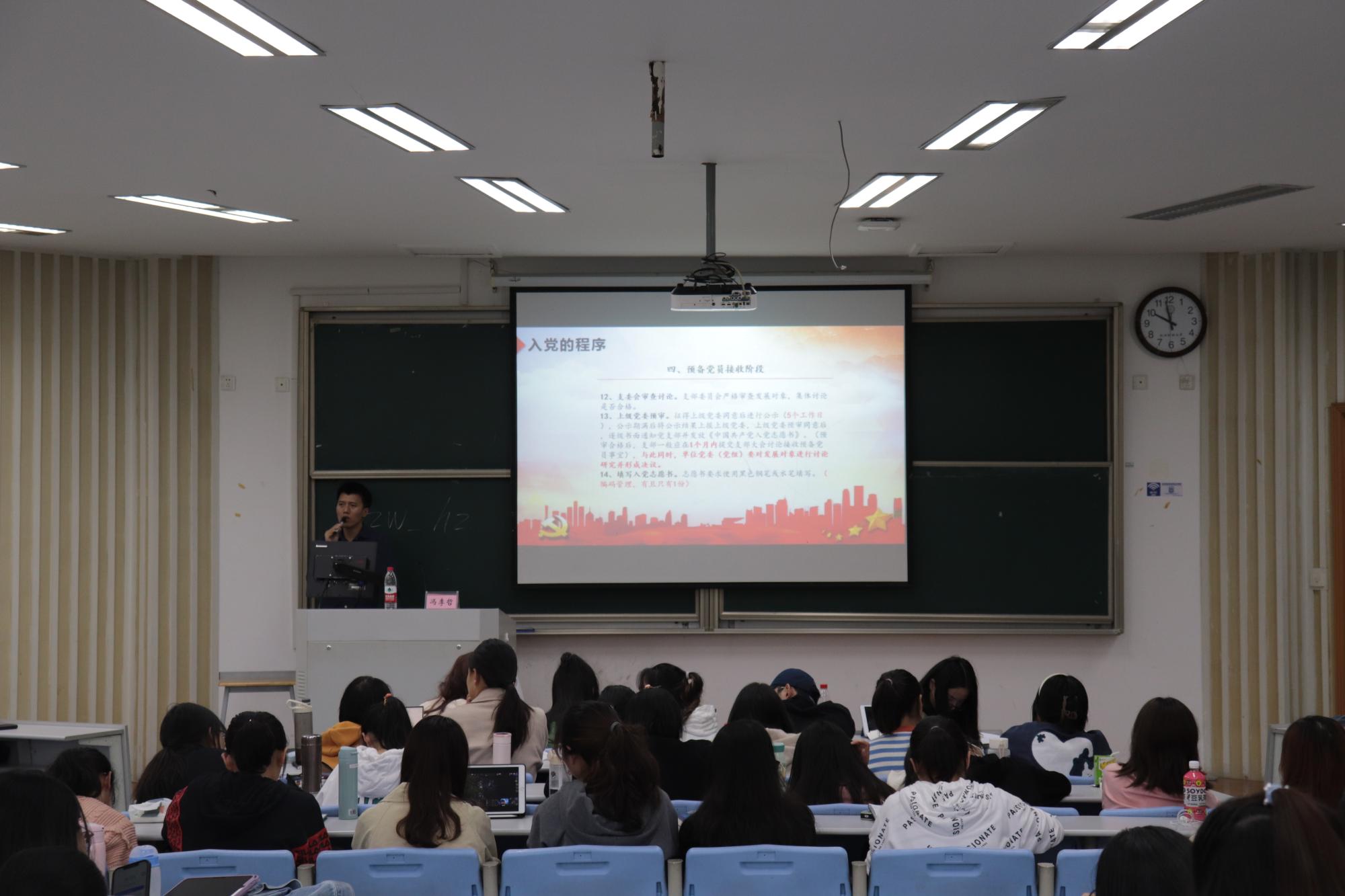 本次培训分别邀请到了公司党委副书记崔泰铭、学办主任李伶俐、辅导员韦罗成、财税公司组织员胡卓文、信智公司组织员冯李哲为大家授课。老师们分别从党员发展流程规范、党员的初心和使命、党史、解读十九大精神等方面进行讲授,希望同学们能够端正入党动机、坚定理想信念,用党员的标准严格要求自己。在红色观影课程中,《1921》和《八佰》带着入党申请人们回顾了那段艰苦奋斗的岁月,感受老一辈共产党人用生命谱写的精神图谱,接受了一场生动的党性教育和思想洗礼。