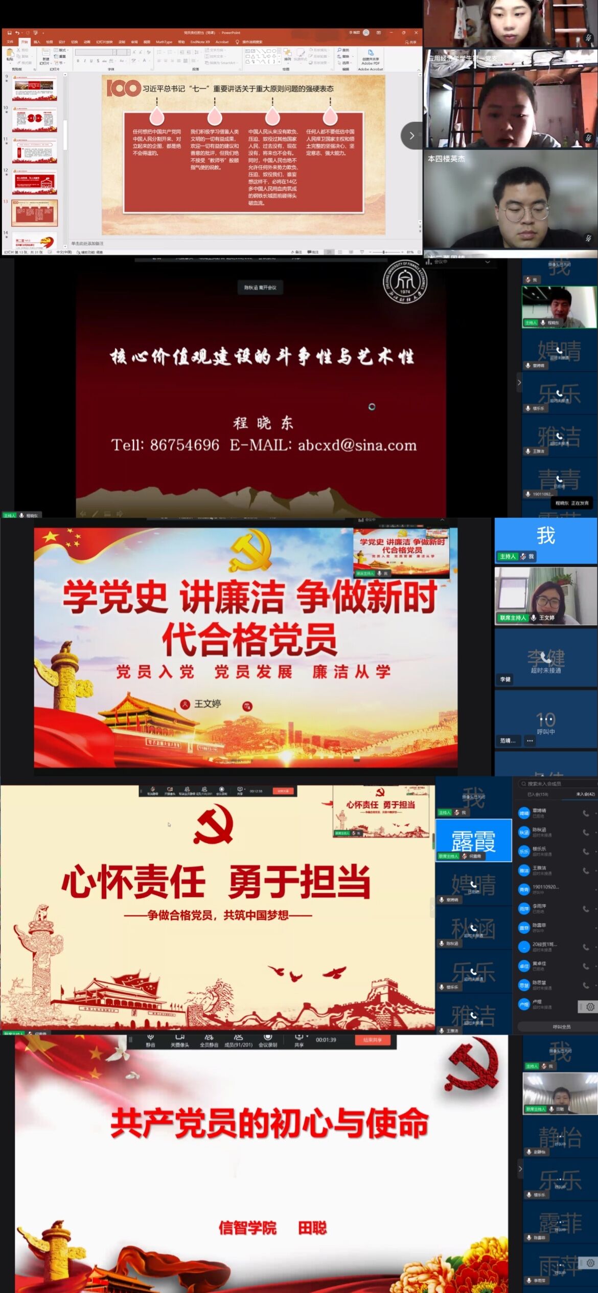 本次培训以线上授课、个人自学、交流研讨相结合的方式进行,邀请了公共管理公司党委副书记程晓东、法公司党委副书记王文婷、数据科学公司党委副书记何露霞、信息管理与人工智能公司党委副书记田聪、公司党委副书记崔泰铭分别从核心价值观建设、党员的初心与使命、责任与担当、廉洁自律等方面为参训学员进行讲解,希望同学们能够加强理论学习,提高党性修养,时刻以党员的标准严格要求自己。课程结束后,公司将组织积极分子参加结业考试。