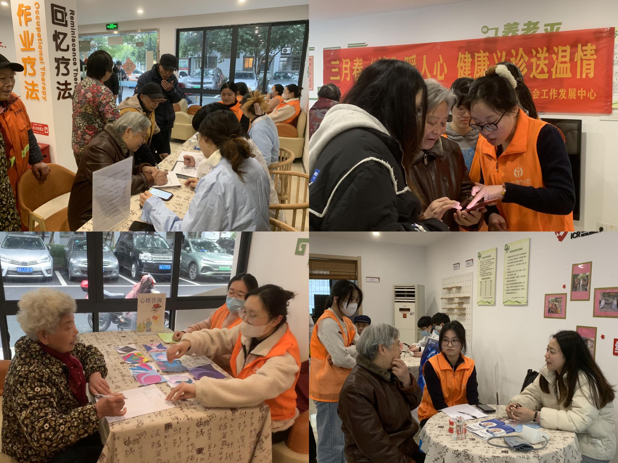 当天上午,支部成员们作为志愿者,为现场的长者和社区居民进行血糖、血氧检测;通过卡牌互动进行心理测试,科普心理健康知识;以量表筛查,问卷调查的形式进行认知症筛查,做到“早预防、早治疗”。多样化的义诊服务,受到了老人和社区工作人员的一致好评。