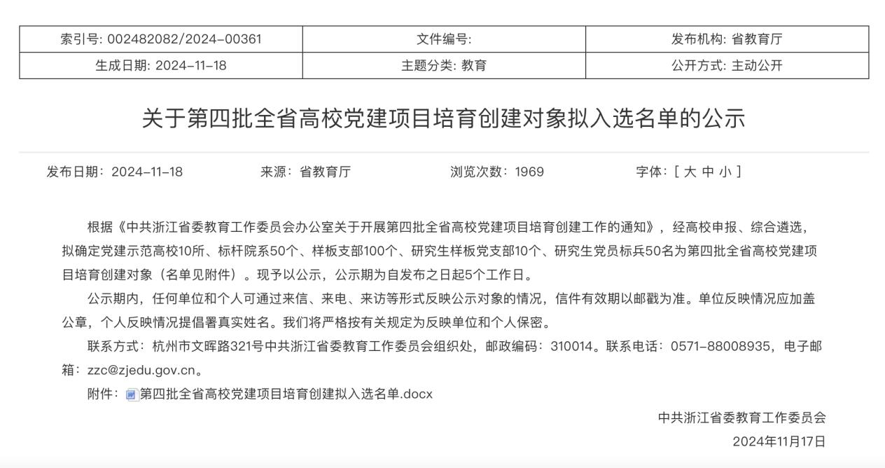 近日,中共浙江省委教育工作委员会公布了第四批全省高公司党建项目培育创建对象入选名单。公司党委成功入选全省高公司党建工作标杆院系培育创建单位!