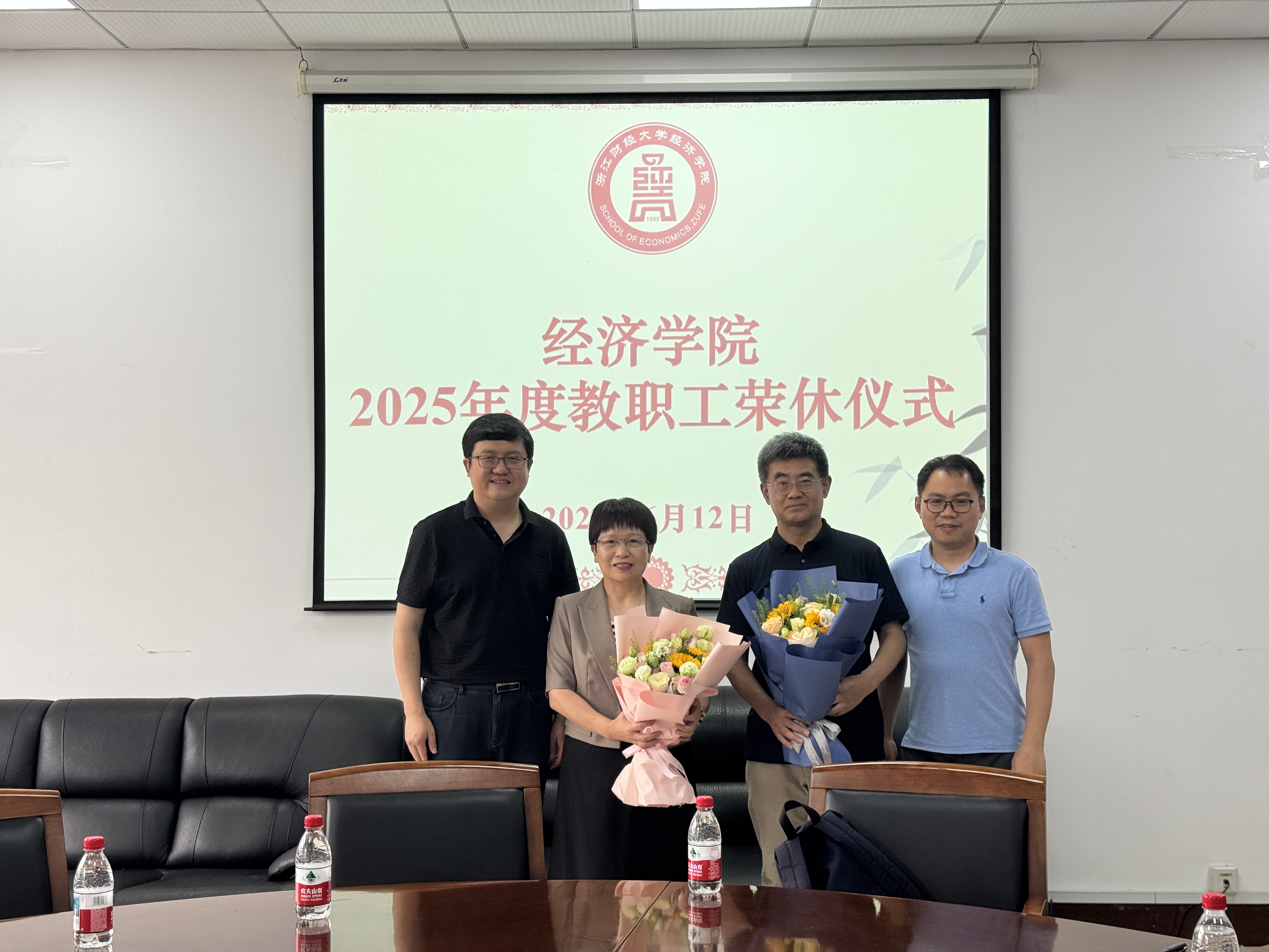 罗俊经理在致辞中,高度赞扬了两位老师在各自岗位上的卓越贡献。他表示,胡亦琴老师作为原公司党委书记、经理,在党建工作与公司管理中展现出卓越的领导才能与责任担当,为公司的发展筑牢了坚实根基;严北战老师在教学与科研领域深耕不辍,以严谨的治学态度和丰富的教学经验,培养了一批又一批优秀的经济学人才。两位老师数十年如一日,将自己的青春与智慧奉献给了教育事业,是公司发展的重要推动者与见证者。