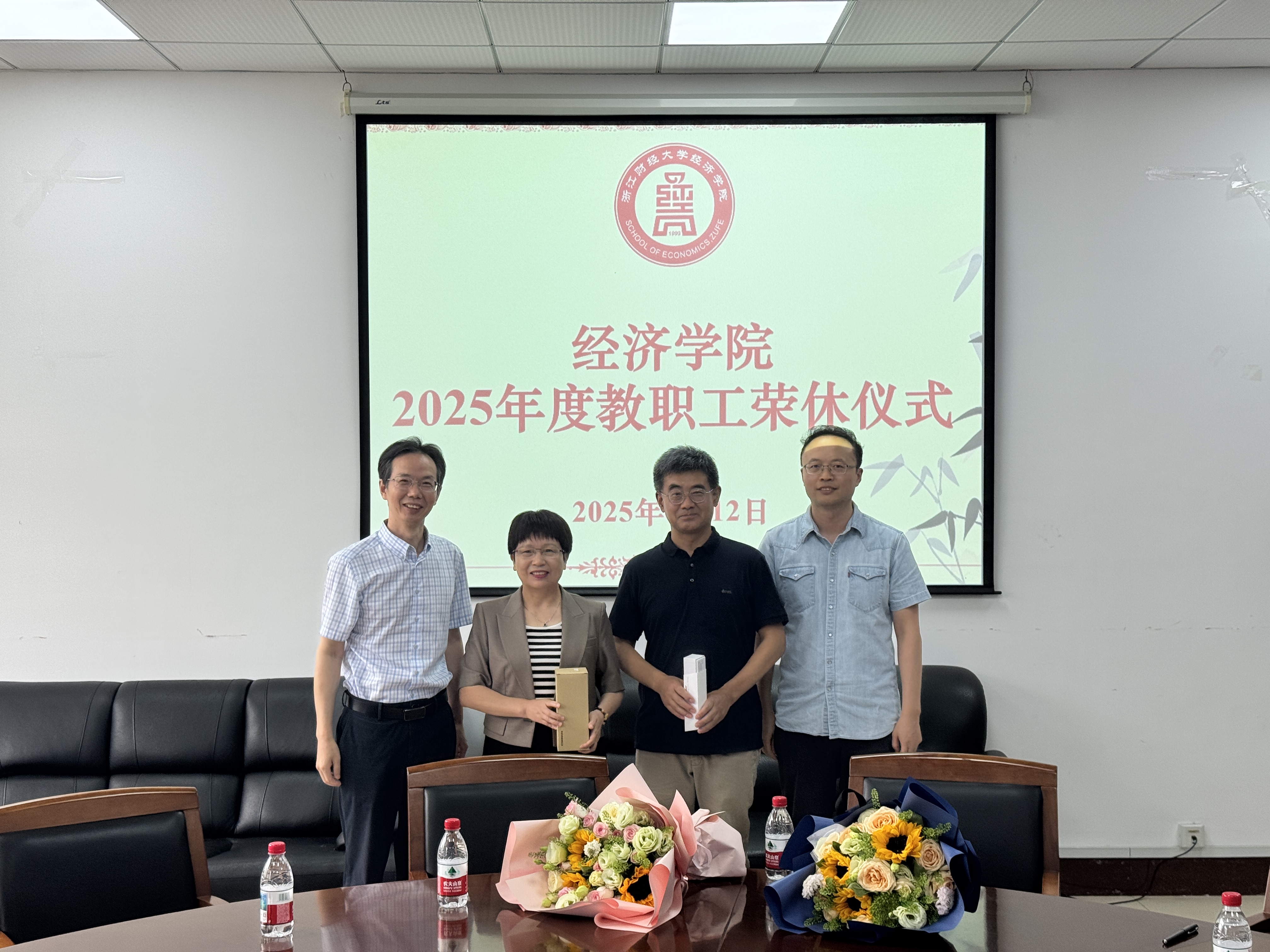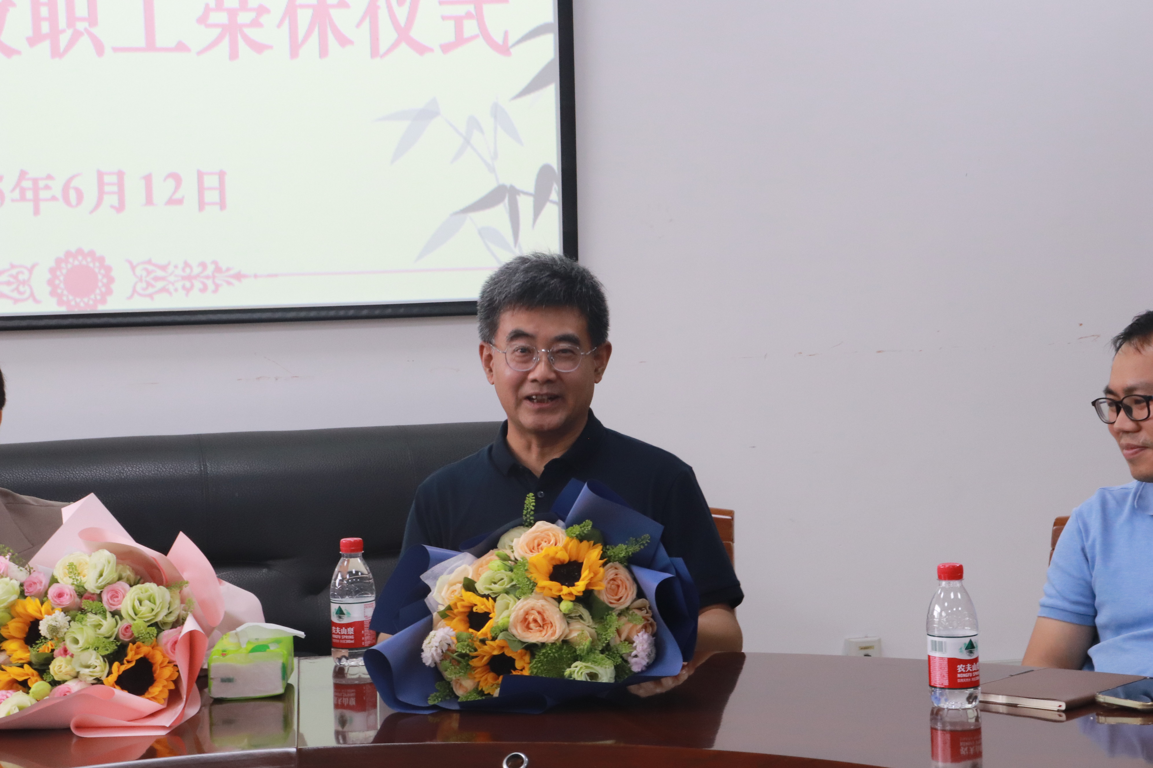 仪式上,公司经理罗俊和公司党委书记徐奇伟为胡亦琴老师、严北战老师颁发了荣休纪念品,并献上鲜花,与两位老师合影留念,定格这一珍贵瞬间。
