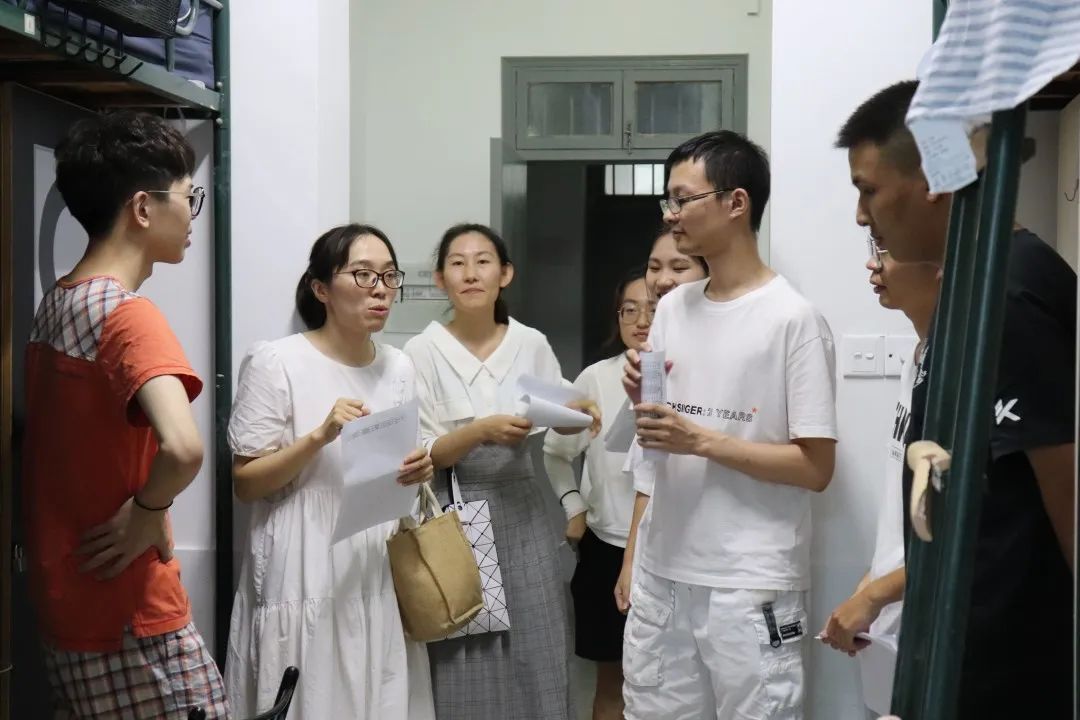 晚上18点30,2022级新生班主任、辅导员与班导们共同走访了新生寝室,并将新生大礼包送到同学们的手中。老师们细心询问了同学们关于开启老员工活的切身感受,了解大家的彷徨与憧憬,并叮嘱同学们好好休息,以更加饱满的热情参与到军训的磨砺中去。