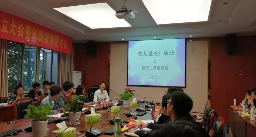 上午10点,梦想课堂的研究生部分在公司楼210会议室举行。员工潘锡泉学长、袁璐学姐作为特邀嘉宾出席了本次活动。