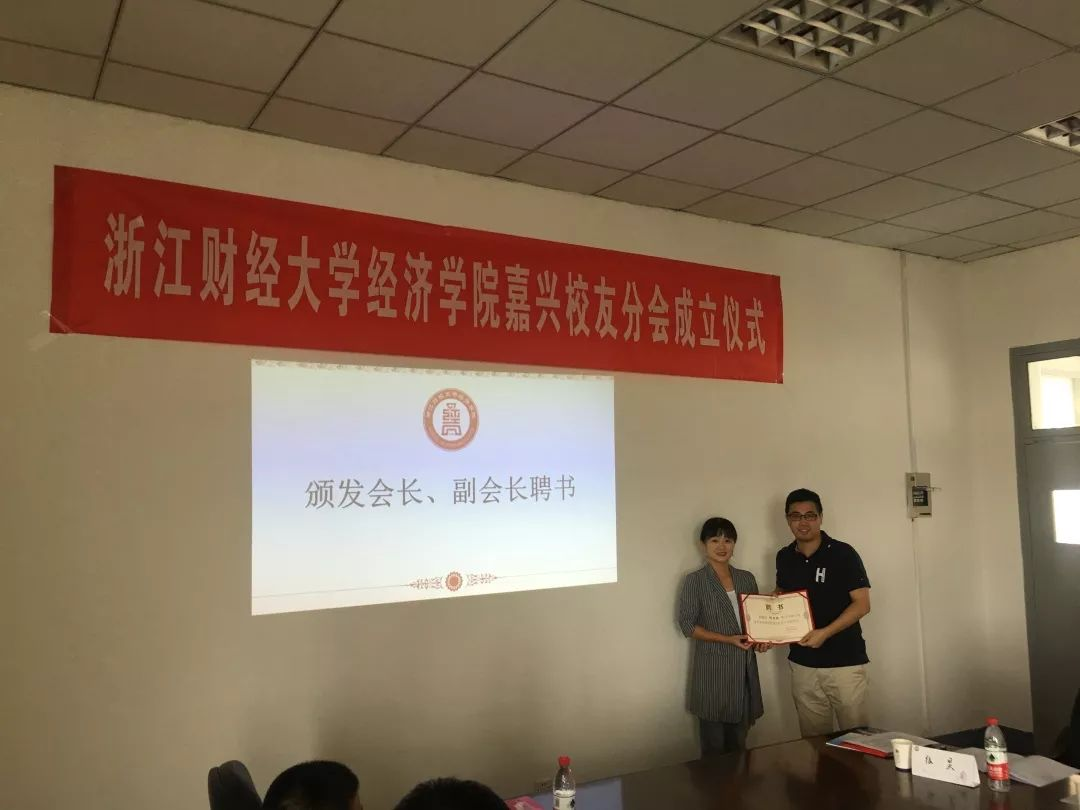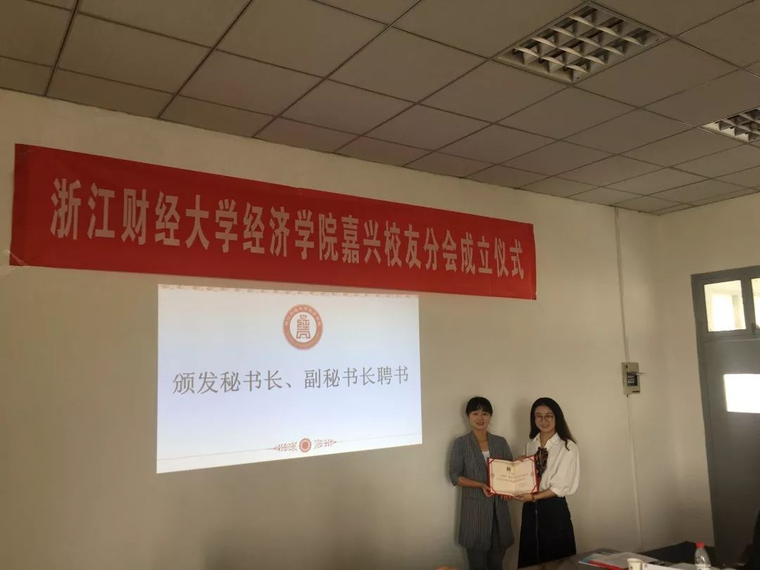 杨小恩副书记为意昂2嘉兴员工分会秘书长、副秘书长颁发聘书。
