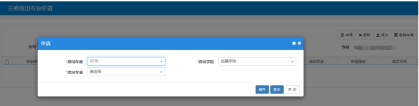 2.选择准出年级(注意:“准出年级”为毕业审核培养方案参照年级,非延长学制员工选“2019”,延长学制员工可选择招生年级或目前所在年级之间的任意年级)和主修准出专业,提交申请;若修读课程比例未达到准出专业的50%,需提交申请理由和替代说明附件,再提交申请。